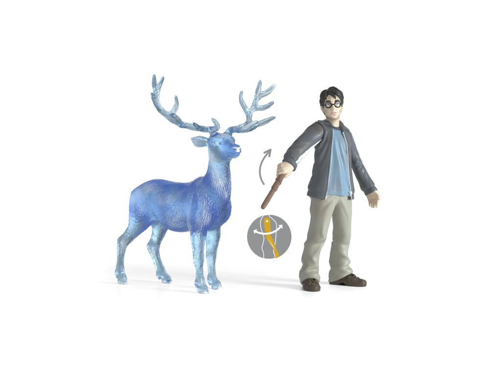Harry Potter™ mávne hůlkou. Po jeho boku je jeho patron. Je to krásný jelen s mohutným parožím. Jeho tělo je poloprůhledné – téměř jako z mlhy – a třpytí se v namodralém světle. Nyní je Harry v bezpečí před vším zlem, protože Patron ho ochrání, ať se děje cokoli. Rozměry modelu: 18 x 15,5 x 11 cm. Věk: 6-12