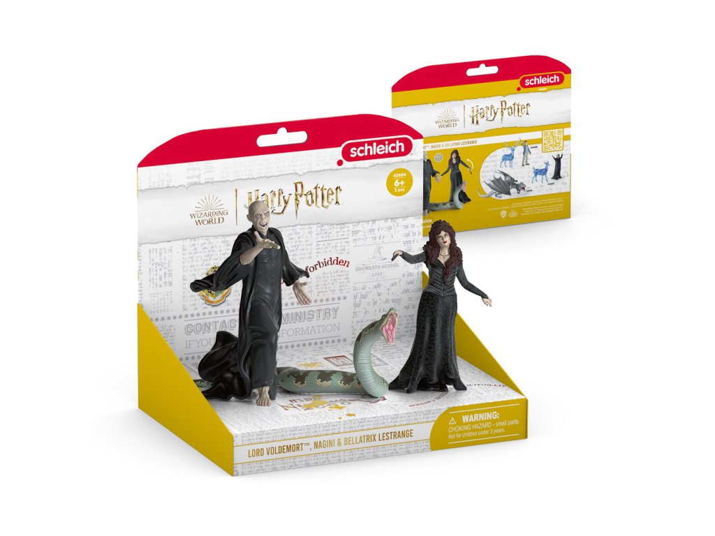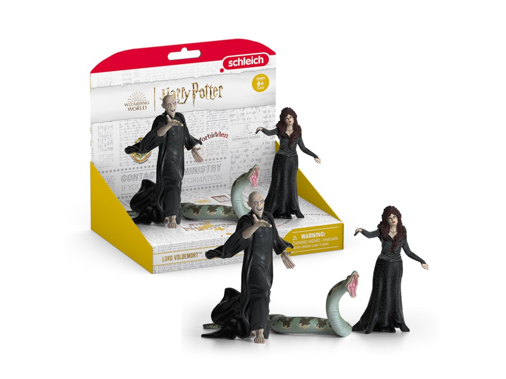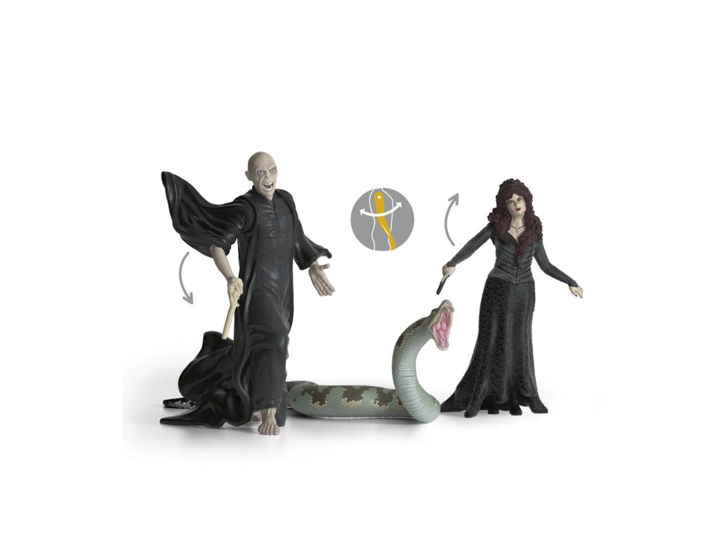 Lord Voldemort™ vypadá rozzlobeně a to nikdy nevěstí nic dobrého. Nikdo si s tímto mocným černokněžníkem nezačne zahrávat, aniž by toho později litoval. Zvláště ne, když má s sebou své oddané společníky hada Nagini a nebezpečnou smrtijedku Bellatrix Lestrangeovou. Už mávají kouzelnými hůlkami. Zakletý had Nagini mezitím doširoka rozevře čelisti a ukáže obrovské jedovaté zuby. Co mají za lubem? A kdo je může zastavit? Rozměry modelu: 18 x 20,5 x 16 cm. Věk: 6-12