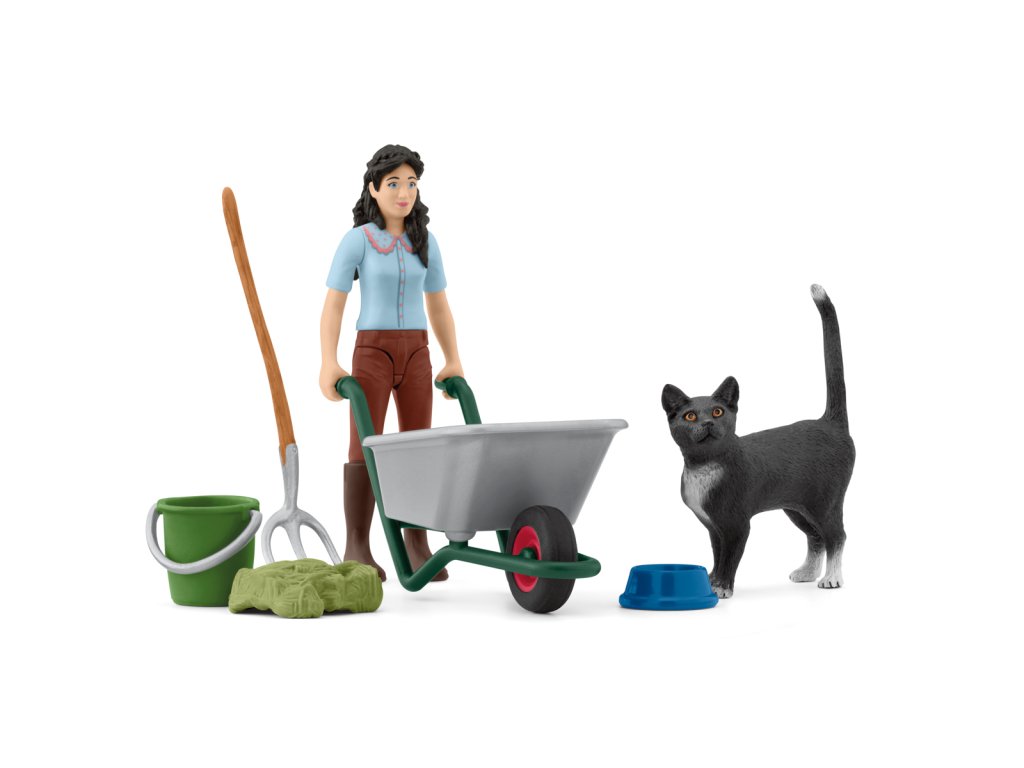 Emily má dneska službu ve stáji. Naštěstí najde všechno, co potřebuje, v sadě na vyhrabávání hnoje a ošetřování. Popadne trakař a vydá se do stájí. Nejdřív odstraní starou slámu a pak stáj propláchne velkým množstvím vody. Kvůli tomu musí do stodoly nosit kbelík za kbelíkem. To je ale otrava! Kdo jí pomůže tlačit trakař? Vidlemi rozděluje čerstvé seno pro zvířata. Společnost jí dělá kočka, která ji pozorně sleduje. Ještě trochu vody do psí misky a Emily je hotová. Emiliina sada na kydání a ošetřování obsahuje veškeré vybavení, které potřebuješ k láskyplné péči o všechna zvířata ve stáji. Obsah: 1× figurka Emily, 1× kočka, 1× trakař, 1× vidle, 1× vidle na seno, 1× kbelík, 1× miska pro psa. Hrací sada mini figurek se dá použít samostatně nebo v kombinaci se stávajícími výrobky HORSE CLUB. Tahle hrací sada je součástí sady POCKET SET a je vhodná pro děti od 4 let. Rozměry balení: 19,9 x 10 x 5,8 cm.