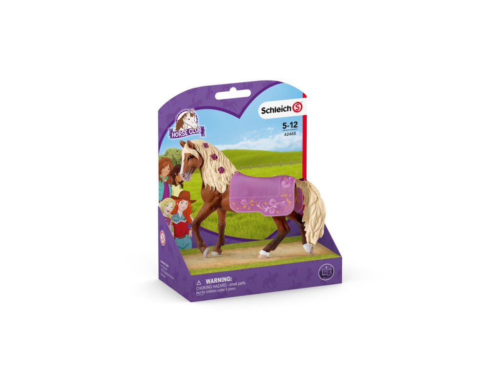 Velkolepý hřebec Paso Fino je zlatým hřebem na největší koňské výstavě v Lakeside. Diváci jsou naprosto nadšení a v úžasu, protože hřebec má obzvláště plynulý způsob chůze. Jeho jméno Paso Fin v překladu znamená plynulá chůze. Figurky Schleich jsou modelovány v nejjemnějších detailech a povzbuzují děti k hraní a učení. Výrobek obsahuje: 1x kůň, 1x odnímatelná deka. Rozměr: 15 x 8,2 x 18 cm. Nevhodné pro děti do 3 let. Doporučený věk: 5-12.