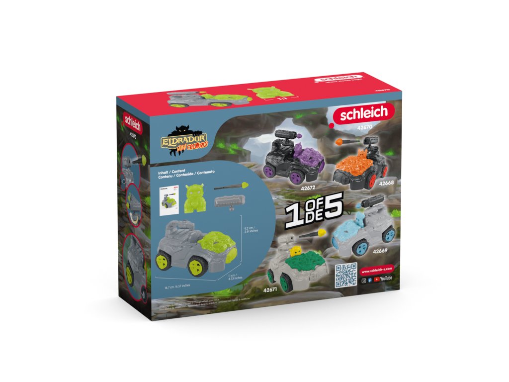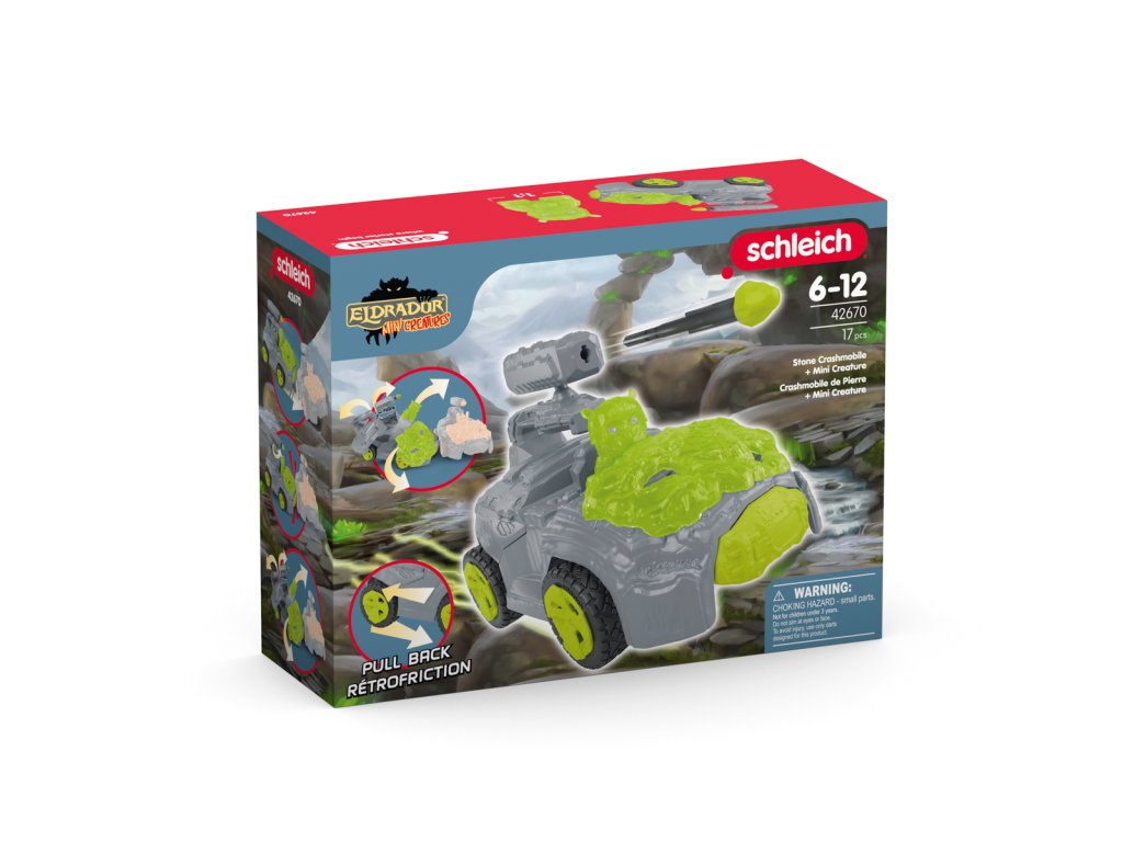 MINI CREATURE byl vylepšen! Ve svém kamenném CrashMobilu se prohání po ELDRADORU® a hledá jen problémy. Průhledné brnění CrashMobilu je tak tvrdé, že ho nic nepoškodí. Náhle prudce zabrzdí. Z cesty se ho snažil vytlačit další problémový Mini tvor! Míří palnou zbraň do správné pozice a stiskává spoušť. Zasáhla ho? Super akční vozidla pro další Mini tvory útočí na ELDRADOR®! Vybavena natahovacím motorem prolétávají vozidla pěti světy stejně rychle jako malé rakety. Díky funkci střelby jsou dobře vybaveni pro každou bitvu. K dispozici v pěti barvách! Rozměry modelu: 12 x 28,5 x 11,5 cm. Počet dílků: 17. Věk: 7-12