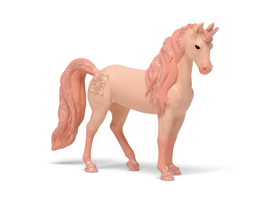 Klisna jednorožce Peach je se svou jemnou broskvovou srstí prostě okouzlující. Kopyta klisny se lesknou na slunci a na čele má třpytivý roh. Hustá hříva a ocas se také třpytí od všech třpytek, které se v nich zachytily. Peach připomíná kouzelný broskvový sad BAYALA®. Tam klisna kdysi poznala sladké tajemství. Je tím myšleno její hříbě jednorožce Iris? Jako připomínku má na boku krásné tetování. Když se Peach ptáte, co přesně tetování znamená, trpělivě se dívá černými očima a elegantně naklání hlavu na stranu. Stromy v broskvovém sadu prý nesou zlaté plody, ale Peach nic neprozradí. Stejně jako skuteční přátelé umí udržet tajemství! Figurka Schleich® patří do tematického světa BAYALA® a je vhodná pro děti od 5 do 12 let. Rozměry produktu: 11 x 16 x 3,5 cm. Rozměry balení: 14,5 x 4 x 12 cm. Věk: 5+