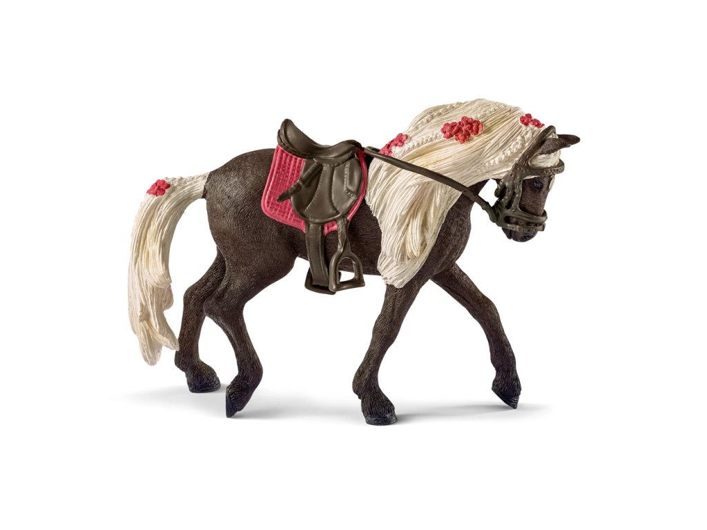 Na výstavě koní v Lakeside mohou všichni nechat oči na kobyle Rocky Mountain a pozorují její půvabné pohyby. Toto plemeno má přirozenou predispozici pro chůzi Tölt, kdy alespoň jedna noha zůstává vždy na zemi. To umožňuje jezdci pohodlně sedět v sedle. Po skončení závodu je nutné kobylu odsedlat, vyhřebelcovat a sundat uzdu. Figurky Schleich jsou modelovány v nejjemnějších detailech a povzbuzují děti k hraní a učení. Výrobek obsahuje: 1x kobyla, 1x sedlo, 1x uzda. Rozměr balení: 15 x 8,2 x 18 cm. Nevhodné pro děti do 3 let. Doporučený věk: 5-12.