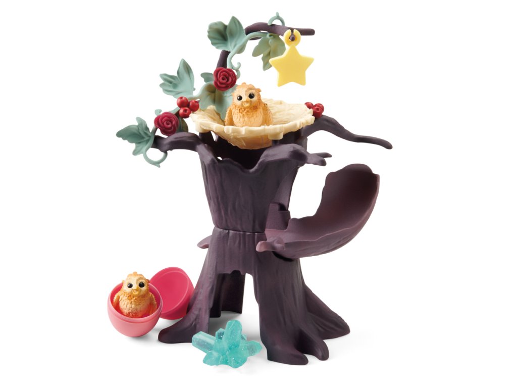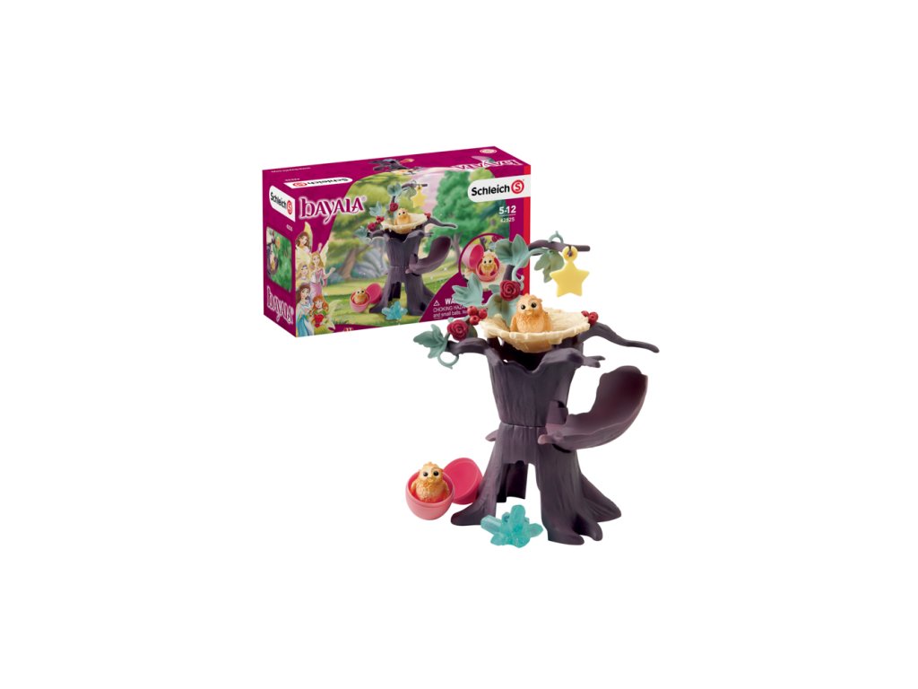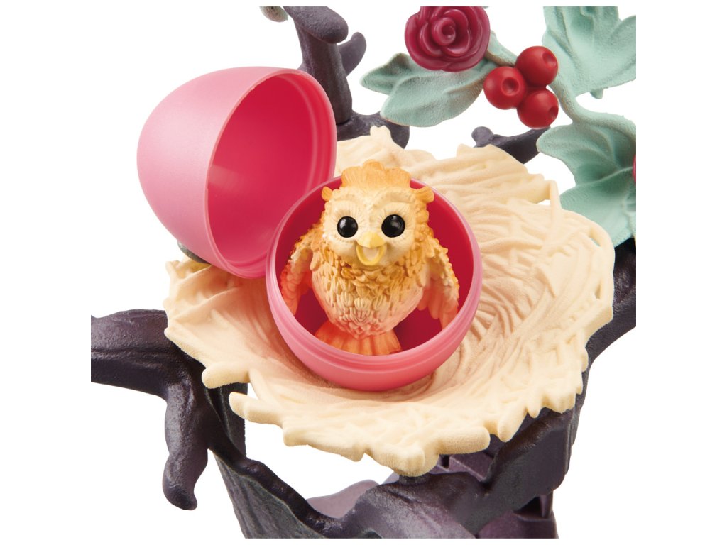 V Bayala® můžete slyšet veselé pípání, vesele si hrajících soviček na stromě, v hnízdě. Dva malí ptáčci, čerstvě vylíhnutí z vajíčka, divoce dovádějí ve svém teplém hnízdě, až peří lítá vzduchem. Krásný strom, pěkně zdobený květinami, bobulemi a úponky listů, se někdy celý třese. Hvězda, visící z větve na vršku stromu, je magický krystal. Malá soví miminka mají dokonce i skluzavku, na které rády jezdí a jízdu doprovází svým vtipným pípáním. V tomto hnízdě nikdy nebude nuda a sovičky uslyšíte široko daleko. Soví mláďata vypadají při hraní opravdu roztomile a okouzlili tak celé pohádkové království. Figurky Schleich jsou mimořádně detailní, láskyplně malované a umožňují dětem hrát si a zároveň se učit. Rozměr balení: 19 x 11,5 x 6,6 cm. Nevhodné pro děti do 3 let. Doporučený věk: 5-12 let.