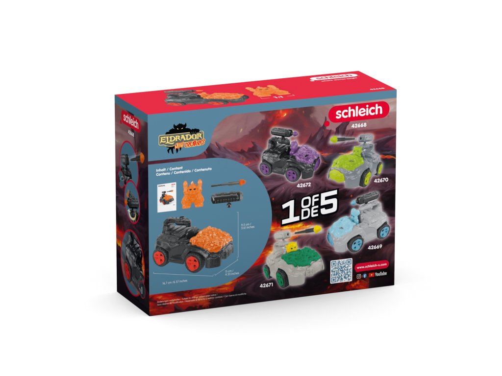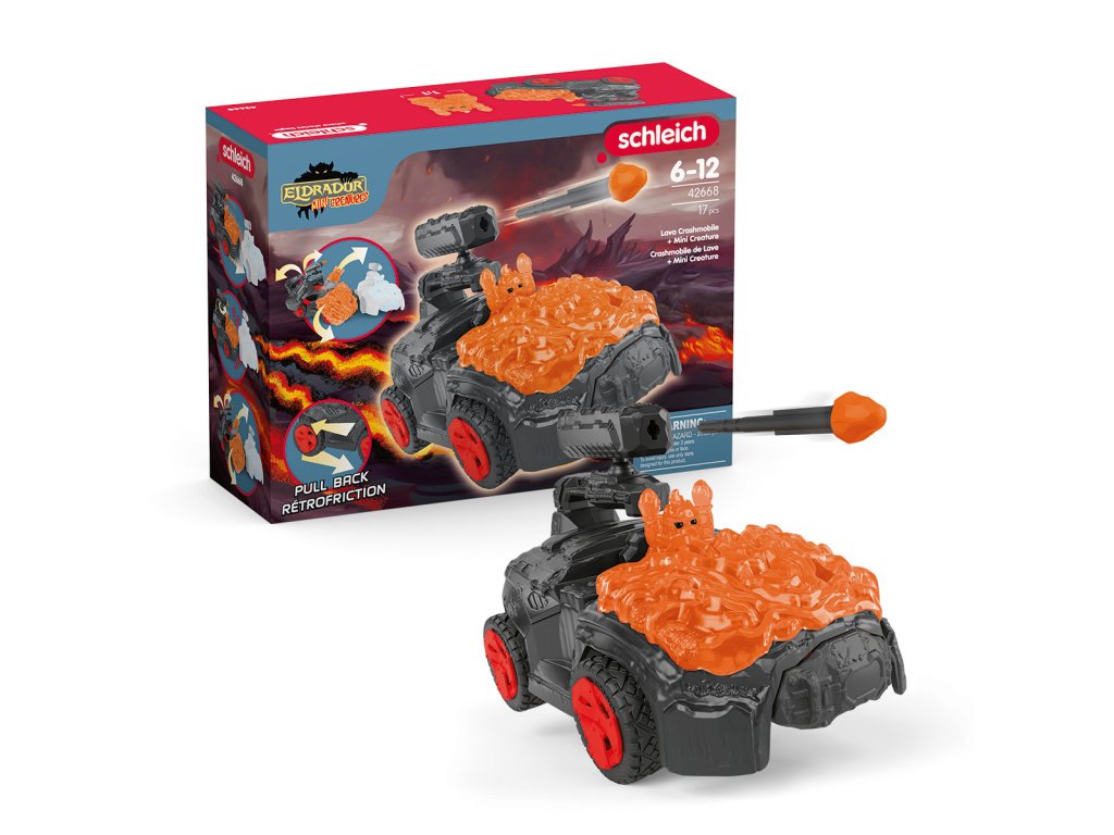 MINI CREATURE byl vylepšen! Ve svém lávovém CrashMobilu se prohání po ELDRADORU® a hledá jen problémy. Průhledné brnění CrashMobilu je tak tvrdé, že ho nic nepoškodí. Náhle prudce zabrzdí. Z cesty se ho snažil vytlačit další problémový Mini tvor z Ledového světa! Dostává palnou zbraň do správné pozice a stiskává spoušť. Zasáhla ho? Super akční vozidla pro další Mini tvory útočí na ELDRADOR®! Vybavena natahovacím motorem prolétávají vozidla pěti světy stejně rychle jako malé rakety. Díky funkci střelby jsou dobře vybaveni pro každou bitvu. K dispozici v pěti barvách! Rozměry modelu: 12 x 28,5 x 11,5 cm. Počet dílků: 17. Věk: 7-12