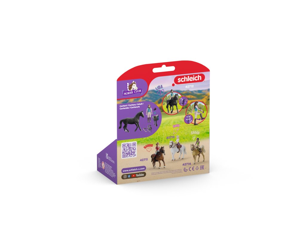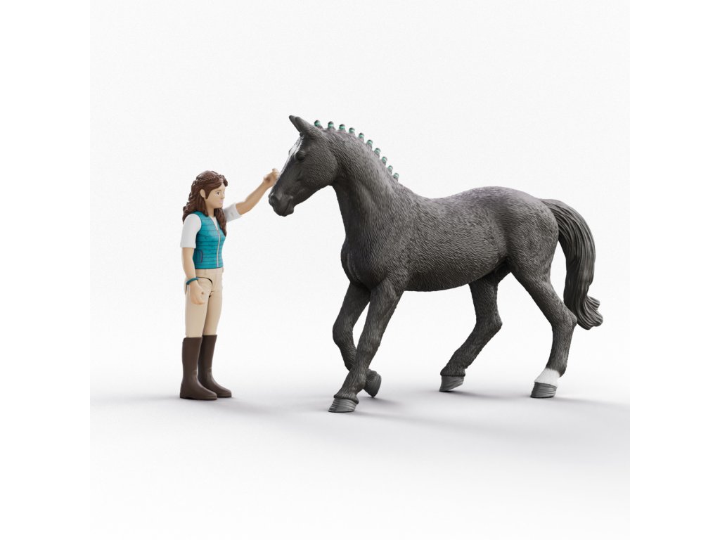 Lisa a Storm jsou skvělí přátelé. Jsou však mnohem víc než to: Společně jsou taky velmi úspěšní na soutěžích a získali už řadu cen. Aby to tak zůstalo, oba pilně trénují v kryté aréně Peppertree. Dnešek není výjimkou. Černý hannoverský valach klusá několik koleček po aréně, aby se zahřál. Skutečná akce právě začíná. Lisa a Storm jsou krásné duo! Lisa spletla svému hannoverskému valachovi černou hřívu do nádherných copů. Jeho srst je čerstvě upravená. Storm už má na sobě sedlo a uzdu. Lisa si nasadila náramek pro štěstí. Během tréninku se nemají nosit šperky, ale Lisa by si nikdy nesundala náramek HORSE CLUB, který nosí všechny dívky. Lisa sesedne a vezme si Stormovo sedlo a uzdu. Zrovna trénují na nadcházející turnaj. Oba jsou úspěšnou dvojicí a získali už řadu titulů. Figurka Lisy je plně pohyblivá. Figurka sedlo a uzda jsou odnímatelné. Obsah: 1× figurka Lisa, 1× kůň Storm, 1× helma, 1× uzda s otěžemi, 1× sedlo, 1× náramek, 1× sedlo. Tento výrobek Schleich® patří do tematického světa HORSE CLUB a je vhodný pro děti ve věku od 5 do 12 let. Rozměry hračky: 10,5 x 4,2 x 14,3 cm. Rozměry balení: 18 x 15,5 x 8,2 cm.