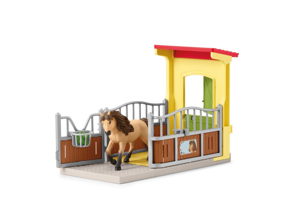 Box pro poníky FARM WORLD je ideálním místem pro odpočinek hřebce islandského poníka schleich®! Po dlouhých vyjížďkách načerpá hřebec islandského poníka sílu díky čerstvým jablkům! Box pro poníky FARM WORLD je první rozšiřující sada pro velkou stáj schleich® se zvířaty a doplňky! Nápis na box pro poníky si může napsat každý sám. Dvířka boxu lze otevírat a zavírat. Rozměry: 24,5x18,7x8,3cm. Věk: 3+