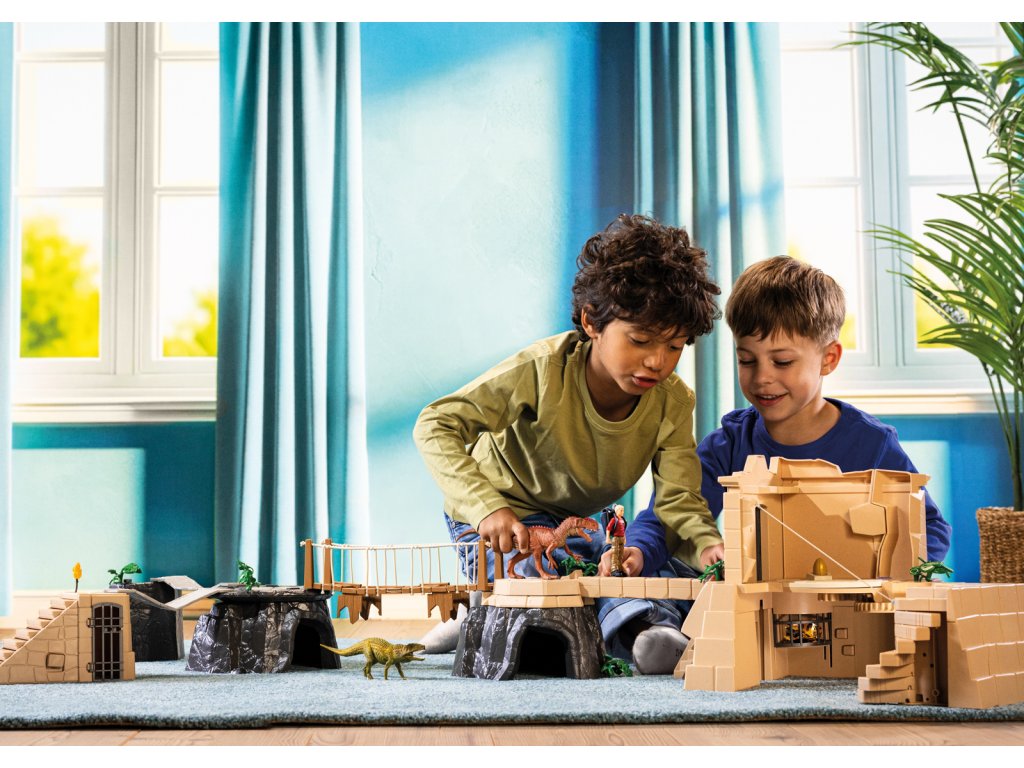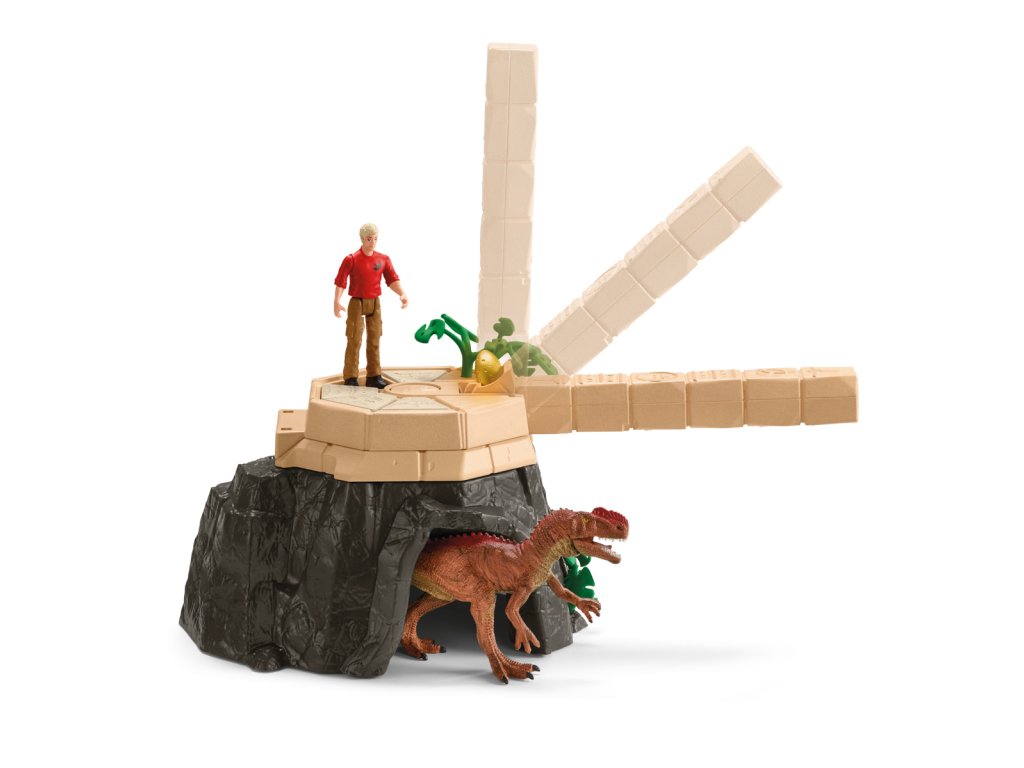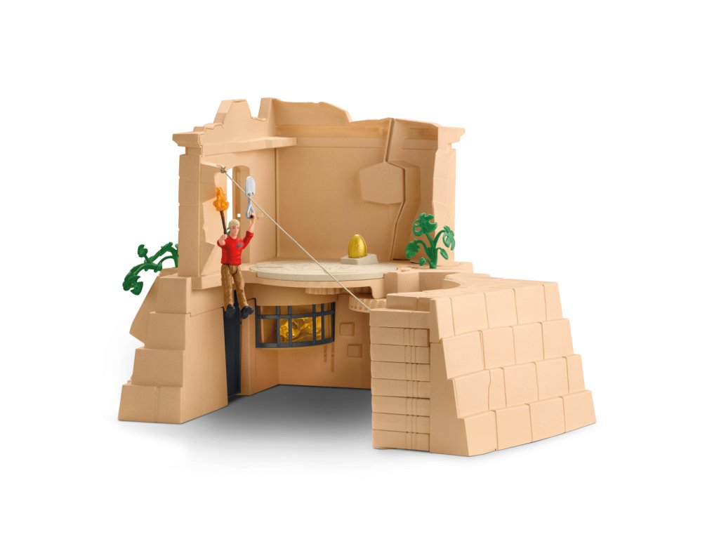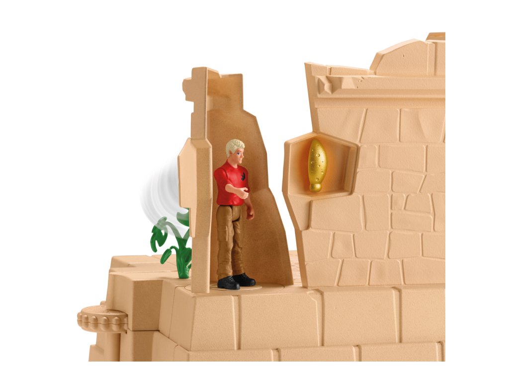 Flynn se nemůže dočkat, až se dostane do chrámu! Je tam ukrytý cenný poklad. Problém je v tom, že chrám hlídají dva dinosauři – Monolophosaurus a Postosuchus! Oba masožravci ho pronásledují na každém kroku. Nyní musí nejen najít správnou cestu, ale také utéct před dinosaury. Chrámový komplex je skutečnou překážkovou dráhou. Pokaždé vypadá jinak, protože se dá vždy znovu sestavit. Nebezpečí číhá na každém rohu. Flynn opatrně balancuje na ztrouchnivělém visutém mostě. Hotovo. Chrám je teď přímo před ním. Stoupá po schodech, když se náhle promění ve skluzavku. Pomoc! Jak se může dostat z této místnosti? Když najde správnou kombinaci spínačů, stěna se otočí a uvolní mu cestu. To bylo těžké! A teď ještě musí v tajných skrýších najít všechny klíčové součástky ke dveřím do chrámu. Než to stihne dokončit, spadne do síťové pasti. Kdo mu dokáže pomoci ven? Rozměry modelu: 37,5 x 56,4 x 14 cm. Počet dílků: 169. Věk: 4-12