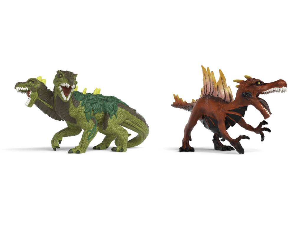 Láva proti džungli! Hurá do boje! Ohnivý dinosaurus a ještěr z džungle svádějí nervy drásající bitvu. Ohnivý dinosaurus otvírá mohutnou tlamu a cení své ostré zuby. Hrůza! Ještěr z džungle má hned dvě hlavy. Chce útočníka rozdrtit dvěma silnými kousnutími. Kdo vyhraje souboj? Raději se držte dál! Figurky se vejdou do BattleCaves. Figurky patří do tematického světa ELDRADOR® CREATURES a jsou vhodné pro děti od 6 do 12 let. Rozměry produktu: 10 x 30 x 15 cm. Rozměry balení: 18 x 30,5 x 16 cm. Věk: 6+