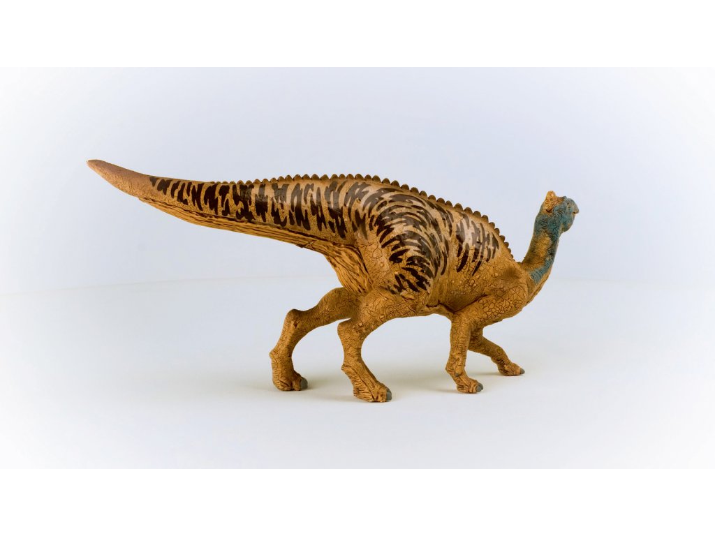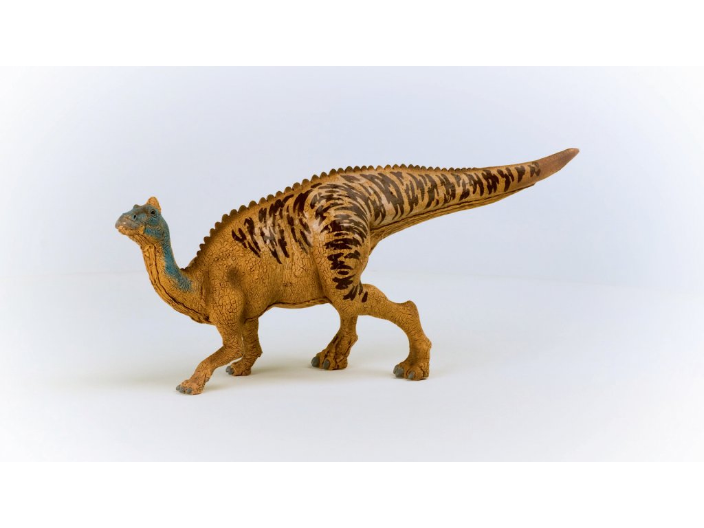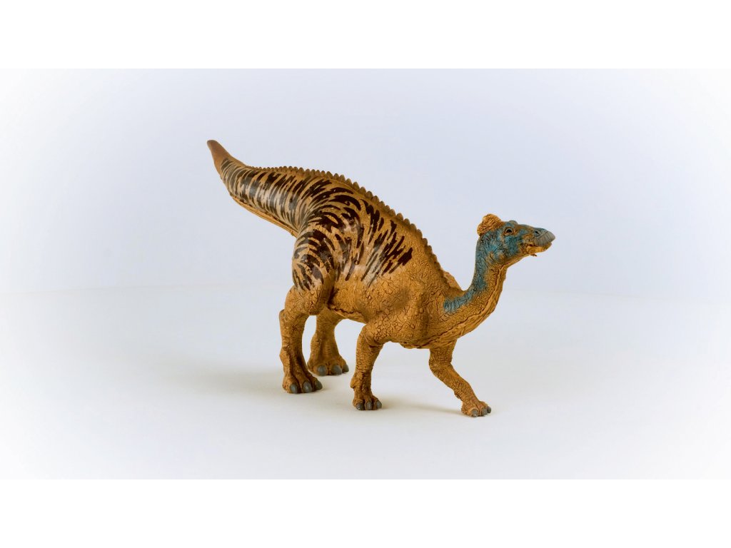 S tím svým nápadným kohoutím hřebínkem na hlavě je edmontosaurus opravdu roztomilý. Uspokojit jeho hlad ale není tak snadné. Váží čtyři tuny a živí se jen rostlinami. Nenapadá tě, jak ho co nejrychleji zasytit? Edmontosaurus je s výškou 13 metrů skutečný obr. Ale taky je vážně přátelský. To vidíš na první pohled. Edmontosaurus je i celkem fešák. Má nápadný kohoutí hřebínek a dlouhý krk. To, co dělá ze všeho vůbec nejraději, je pomalu se procházet po lesích a loukách a okusovat tamní keře. Ale protože je tak velký, trvá mu celou věčnost, než se listím a větvičkami zasytí. Nechceš mu dělat společnost? Rozměry: 29,6x11,6x6,7cm. Vhodné pro děti od 3 let.