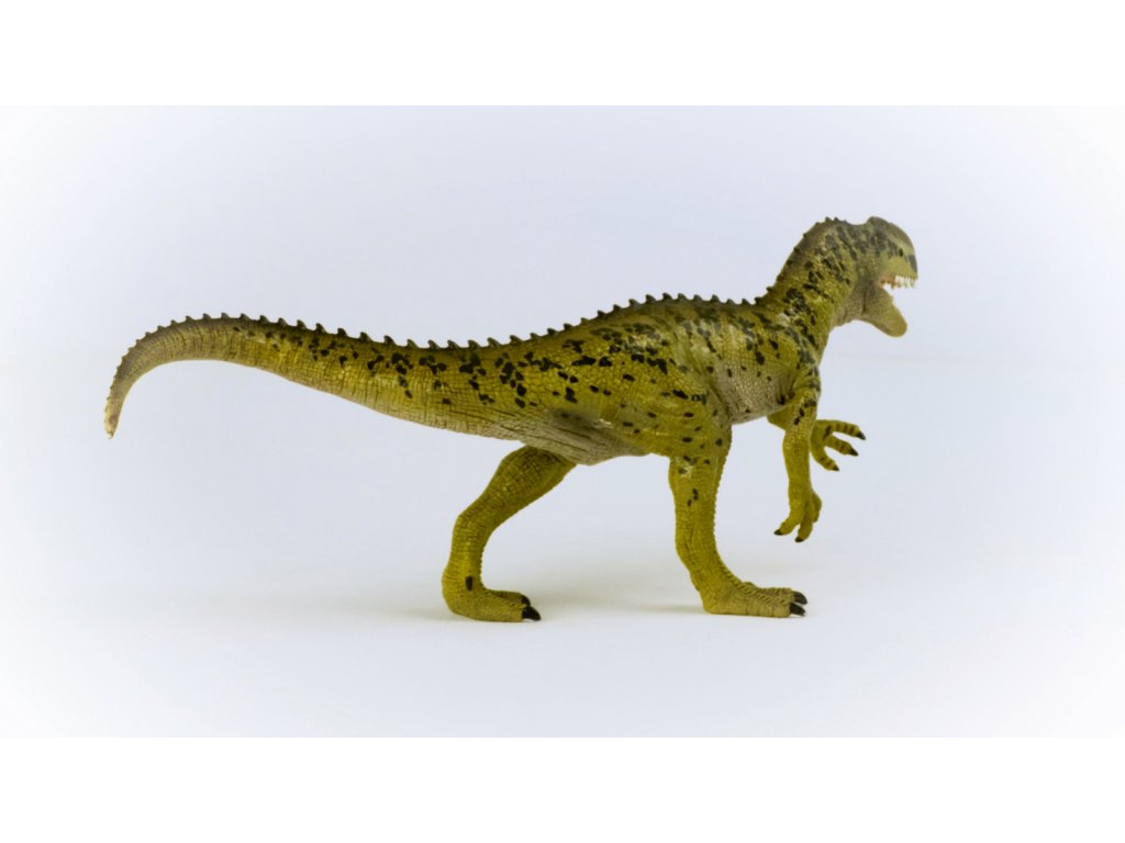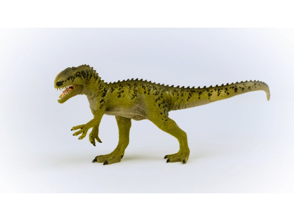 Když tenhle dinosaurus sevře svoje pohyblivé čelisti, není úniku. Lovícího monolophosaura není radno rušit. Ale jeho lov určitě můžeš sledovat z bezpečné vzdálenosti! Monolophosaura snadno poznáš podle dlouhého hřebene na hřbetě nosu, který mu propůjčuje jeho hrůzostrašný vzhled. Podobně jako draci má záda od špičky hlavy až po špičku ocasu pokryté ostny. Zajímalo by mě, jestli dokáže zachovat klid. Tenhle dinosaurus patří do řádu plazopánvých dinosaurů. Nejspíš teď hledá něco k snědku. Vykračuje si na svých silných nohách po břehu a hledá kořist. Raději ho nebudeme rušit! Rozměry:21,6x8,6x4,2cm. Vhodné pro děti od 3 let.