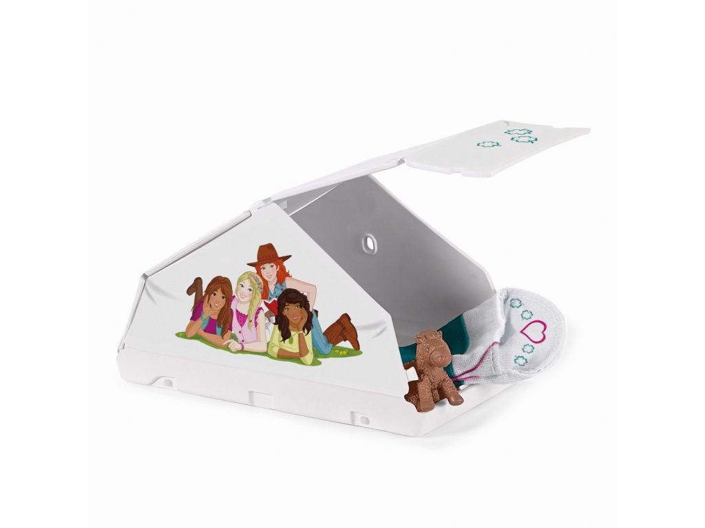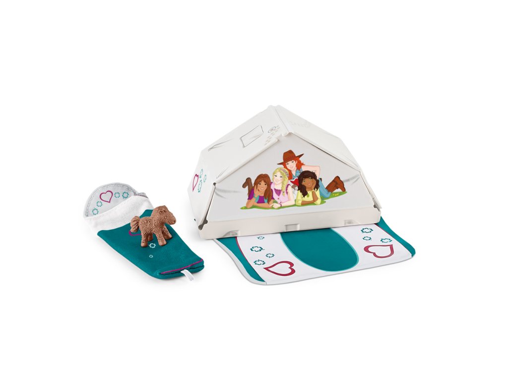 S kempingovým příslušenstvím Schleich® Horse Club se výlet do přírody stane pro přátele Horse Club úžasným zážitkem. Prostorný stan lze postavit během chvilky a pohodlný spací pytel je rozbalen s velkým očekáváním. Roztomilý koník zvědavě nakukuje do spacáku. Součástí sady je také velká deka pro koně. Sada obsahuje: 1x stan, 1x roztomilý plyšový koník, 1x spací pytel, 1x koňská deka. Figurky Schleich jsou mimořádně detailní, láskyplně malované a umožňují dětem hrát si a zároveň se učit. Nevhodné pro děti do 3 let. Rozměr balení: 13,6 x 19,2 x 5,8 cm. Doporučený věk: 5-12.