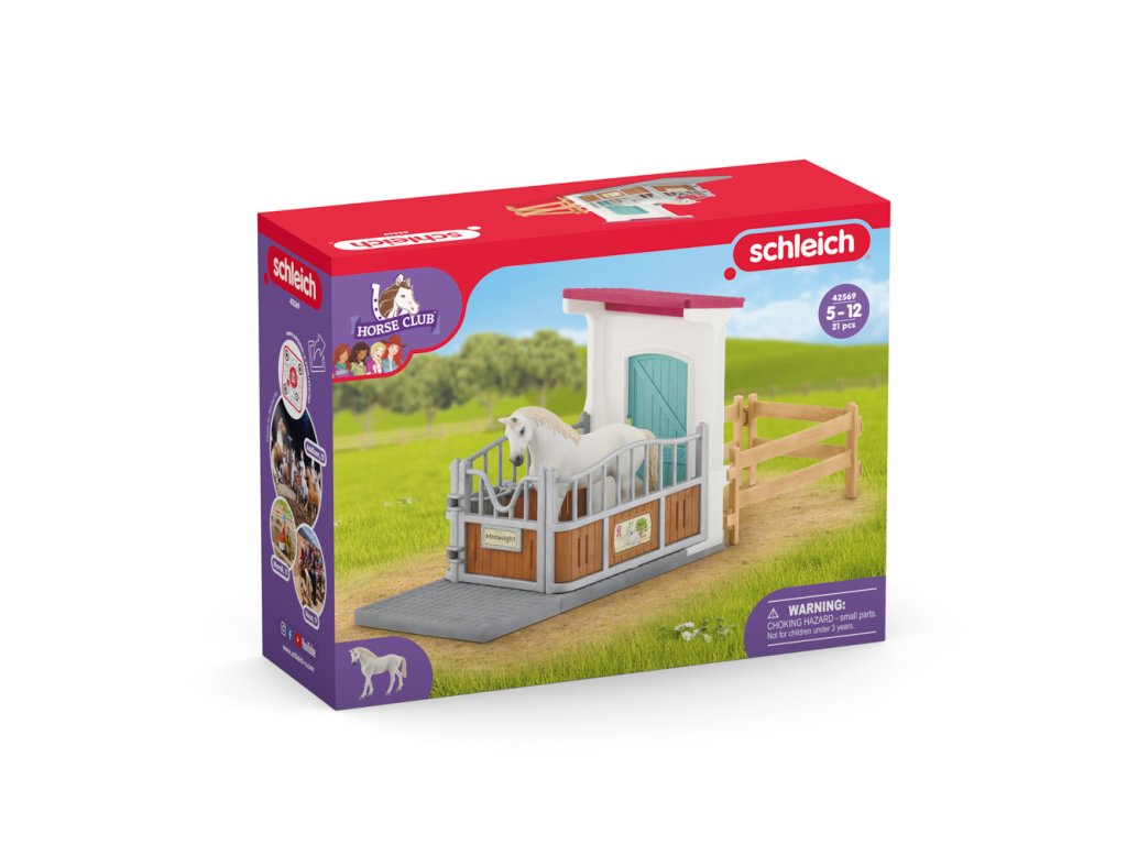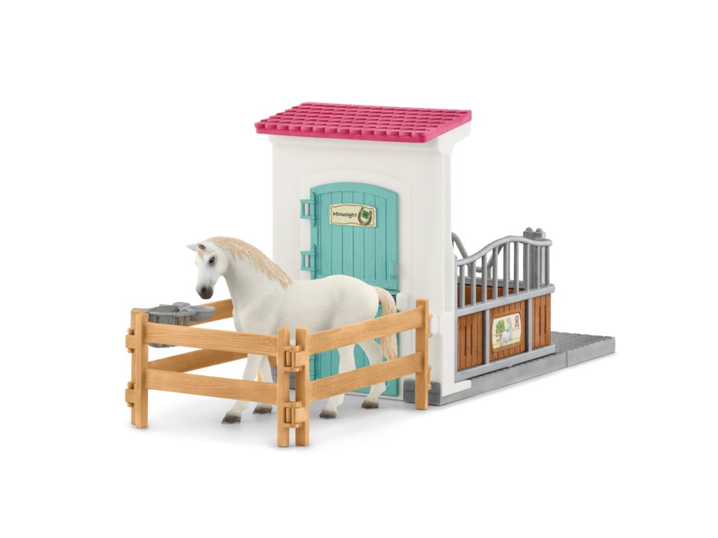 Po všem tom ježdění, skákání a uklízení se každý kůň těší na přestávku. Nejlepší to pro ně je v útulné stáji pro koně z kolekce Schleich® HORSE CLUB. Najdou tu vše, po čem koňské srdce touží: Mohou se najíst u žlabu na krmivo a napáječka uhasí žízeň i toho největšího koně. Jediné, co chybí, je stroj na zmrzlinu. Naštěstí můžeš box podle nálady zavřít nebo nechat otevřený. Koně ho mají nejradši otevřený, aby se mohli pochlubit svými medailemi pro šampiony. Vystavené však mají jen opravdu speciální ceny. Jinak by tu nezbylo žádné místo pro koně! Ve které místnosti se cítíš nejlépe? Sada obsahuje: 1× anglický plnokrevný hřebec, 1× box pro koně, 1× napáječka, 1× stojan na seno, 2× prvek výběhu dlouhý, 1× prvek výběhu krátký. Rozměry: 18,7 x 24,5 x 8,3 cm Věk: 3+
