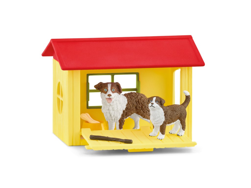 Ťuk, ťuk! Je někdo doma? ANO! Protože australský ovčák žije v boudě z kolekce Schleich® FARM WORLD. Je to pastevecký pes, který je neustále plný energie. I kdyby měl jen pomoci 100 ovcí najít cestu domů nebo napsat pět stránek domácího úkolu z matematiky. Když si potřebuje dobít baterky, udělá si pohodlí ve své boudě. Je tam útulno a má tam kost, misku na pití a běhací pás, kdyby se chtěl ještě trochu odreagovat a venku pršelo. I když se rád vydá do deště, pokud je nutné zachránit ovci, která zabloudila. V boudě ale bohužel není místo pro všechny! Sada obsahuje: 1× psí bouda s bočními výklopnými dveřmi a dvěma okny, 1× fena australského ovčáka,1× štěně australského ovčáka, 1× psí miska, 1× kost, 1× klacek. Rozměry: 15 x 19 x 8,2 cm Věk: 3+