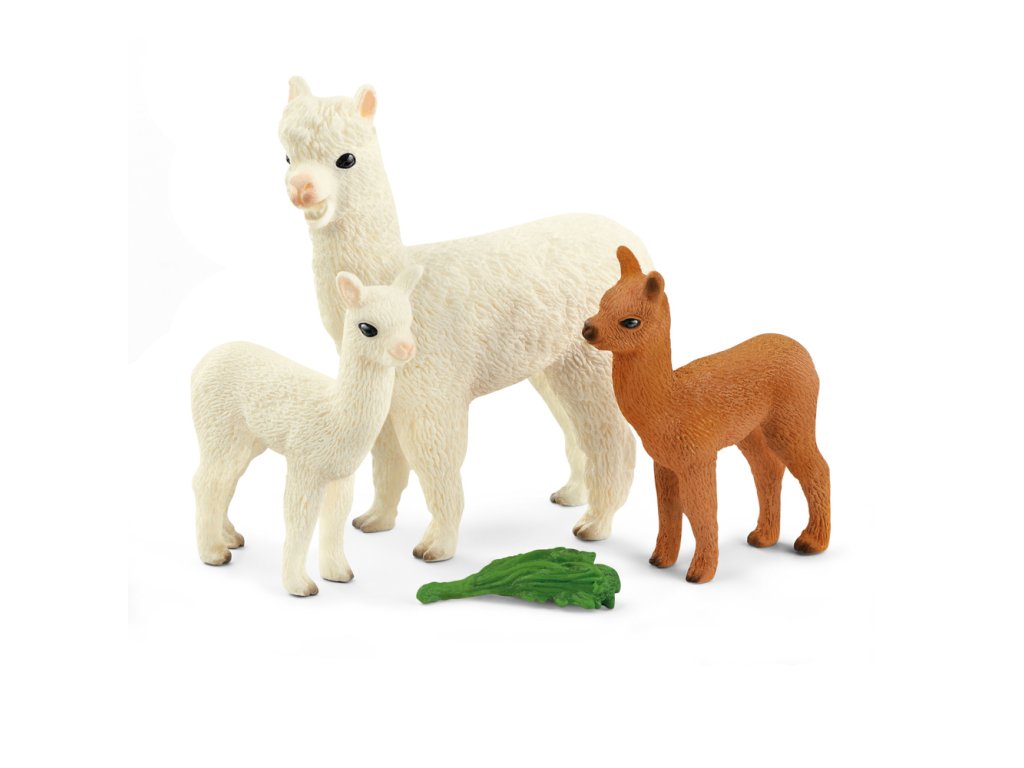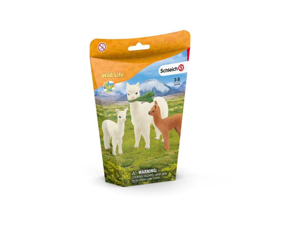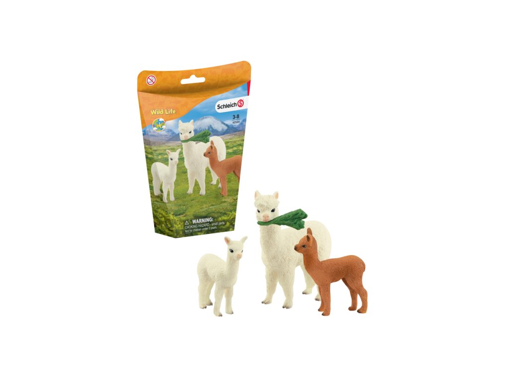 Zvířata v sadě alpaky od Schleich® WILD LIFE pocházejí z jihoamerických And, kde jsou chována pro svou měkkou, teplou vlnu. Jsou to bezhrbí velbloudi s klidným a přátelským temperamentem. Dvě mláďata mají různou srst: jedno je bílé, druhé hnědé. Jsou kojeni matkou po dobu 6-8 měsíců, než začnou jíst trávu. Rozměr balení: 13,6 x 19,2 x 5,8 cm. Nevhodné pro děti do 3 let. Doporučený věk: 3-8.