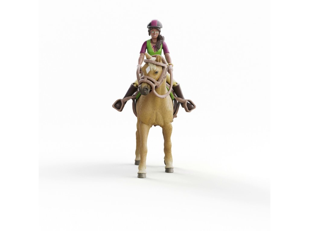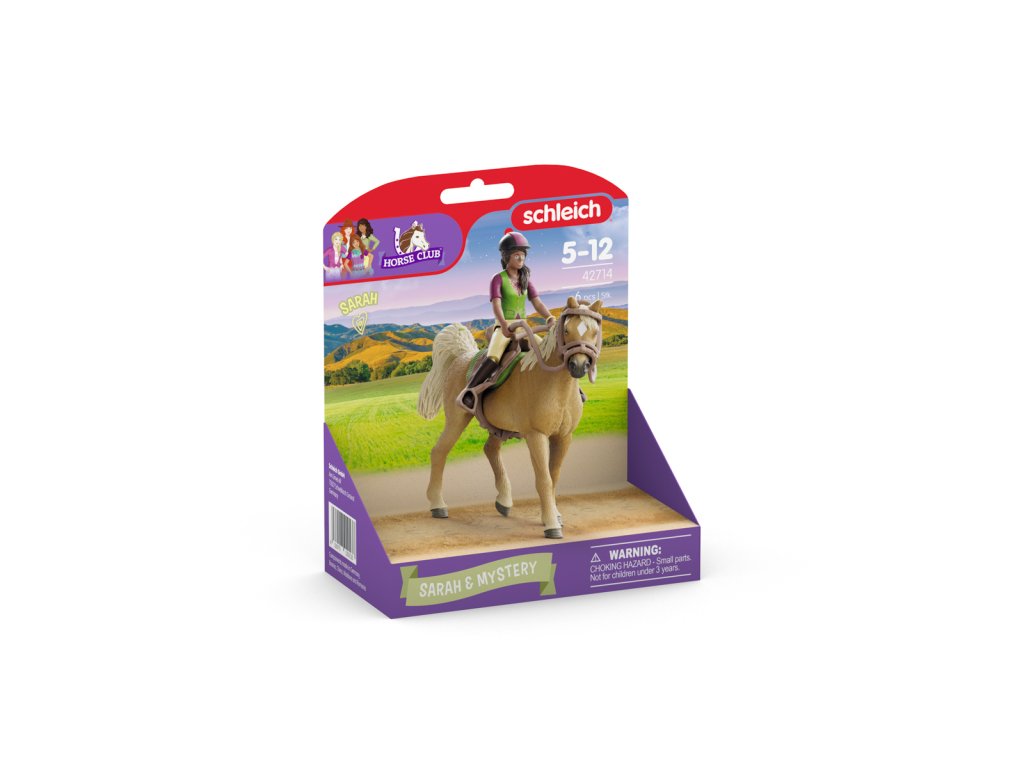 Sarah a Mystery jsou nadšené. Na dnešek si naplánovali výlet. Sarah chce vzít svou arabskou klisnu na projížďku do lesů Peppertree. Sára jako vždy jemně nasadí klisně uzdu, otěže a sedlo a láskyplně ji pohladí po diamantové srsti. Nezapomněla si vzít ani zelenou sedlovou látku. Chce přece, aby byla jízda příjemná, takže sedlo nesmí drhnout. Můžeme? Tak pojďme na to. Sarah a Mystery úplně září. Sarah miluje vyjížďky se svou arabskou klisnou. A Mystery, krásná béžová klisna, to cítí úplně stejně. Šťastně nastraží uši a v očekávání zafrká. Sarah jí pohladí krásnou bílou skvrnu na čele a vyšplhá se do sedla. Sarah a její arabská klisna Mystery jsou nerozlučné – srdcem i duší. Figurka Sarah je plně pohyblivá. Figurka sedlo a uzda jsou odnímatelné. Obsah: 1× figurka Sarah, 1× kůň Mystery, 1× helma 1× uzda s otěžemi, 1× sedlo, 1× náramek, 1× sedlo. Tento výrobek Schleich® patří do tematického světa HORSE CLUB a je vhodný pro děti ve věku od 5 do 12 let. Rozměry hračky: 10,3 x 3,3 x 13,9 cm. Rozměry balení: 18 x 15,5 x 8,2 cm.
