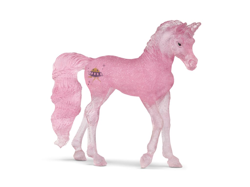 Sběratelský jednorožec Aliena ze světa BAYALA. Se svou růžově průhlednou hřívou a ocasem vypadá úžasně. Na boku má krásné tetování. Celý je třpytivý a průhledný. Rozměry: 16,1 x 2,5 x 12,4 cm. Věk: 5-12