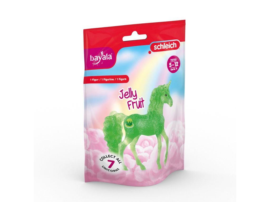 Jednorožec Jelly Fruit je roztomilý jednorožec ze Schleich® Bayala®. Ji i dalších 6 jednorožců z téhož stáda nazývají víly, draci a další obyvatelé Bayala láskyplně ´´kvítka´´. Díky jejich pestré srsti je opravdu těžké je přehlédnout. Nikdy se ale neví, jakou barvu bude mít jednorožec, než se narodí. Jednorožec vděčí za svůj vzhled té cukrovince, kterou snědl jako první – v případě Jelly Fruit to bylo želé ovoce. Takto přišel jednorožec ke svému roztomilému jménu a tetování. Figurky Schleich jsou mimořádně detailní, láskyplně malované a umožňují dětem hrát si a zároveň se učit. Rozměry: 2,5 x 16,1 x 12,4 cm. Nevhodné pro děti do 3 let. Doporučený věk: 5-12.