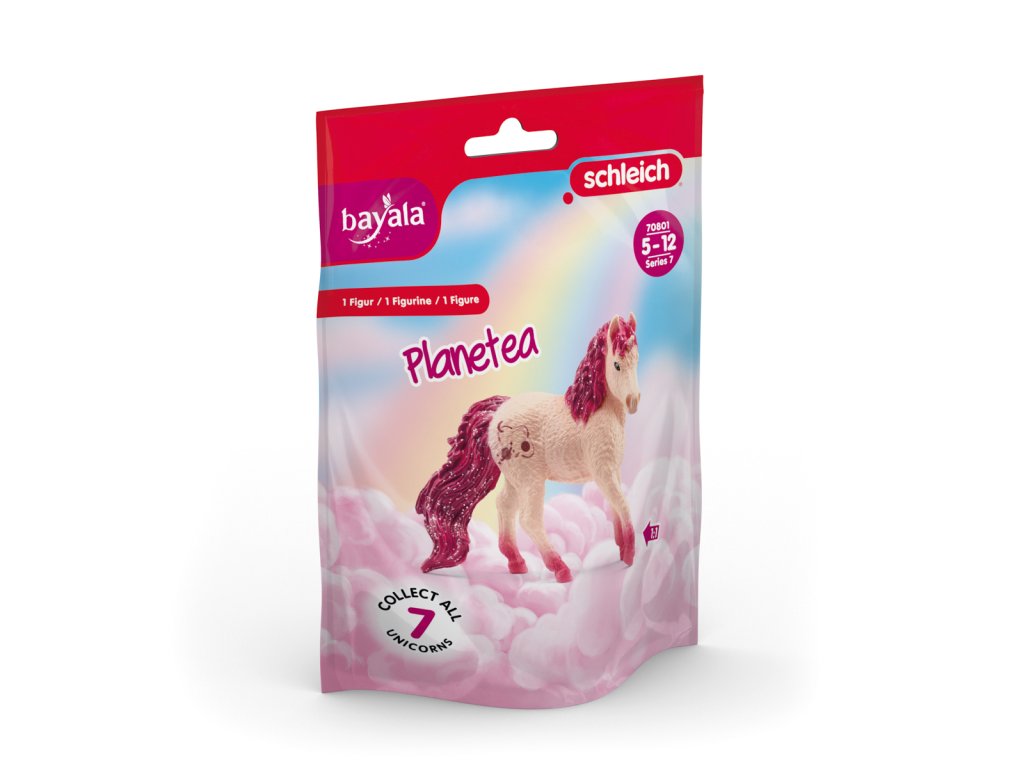 Sběratelský jednorožec Planetea ze světa BAYALA. Se svou třpytivě vínovou hřívou a ocasem vypadá úžasně. Na boku má krásné tetování. Vínovou barvu skvěle doplňuje jeho majestátní béžová srst s rohem. Rozměry: 16,1 x 2,5 x 12,4 cm. Věk: 5-12