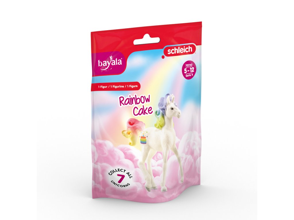 Jednorožec Rainbow Cake je roztomilý jednorožec ze Schleich® Bayala®. Ji i dalších 6 jednorožců z téhož stáda nazývají víly, draci a další obyvatelé Bayala láskyplně ´´kvítka´´. Díky jejich pestré srsti je opravdu těžké je přehlédnout. Nikdy se ale neví, jakou barvu bude mít jednorožec, než se narodí. Jednorožec vděčí za svůj vzhled té cukrovince, kterou snědl jako první – v případě Rainbow Cake to byly duhové dortíky. Takto přišel jednorožec ke svému roztomilému jménu a tetování. Figurky Schleich jsou mimořádně detailní, láskyplně malované a umožňují dětem hrát si a zároveň se učit. Rozměry: 2,5 x 16,1 x 12,4 cm. Nevhodné pro děti do 3 let. Doporučený věk: 5-12.