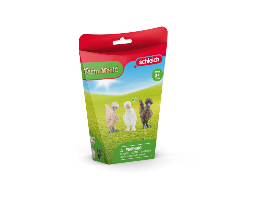 Chaos ve stodole! Tři slepičí kamarády z kolekce Schleich® FARM WORLD ti na farmě udělají pořádný nepořádek. Ať už jde o krádež něčeho ze sklizně, pomalování spícího kohouta nebo promíchání tvých barevných pastelek, tyhle tři opeřené kamarádky vždycky něco provedou. A jako sehranému týmu jim to většinou projde. A tak se smějí, čechrají si peří a tancují po louce. Díky jejich různě zbarvenému peří je však vždy rozeznáš. Dokážeš zjistit, která z nich je největší potížistka? Rozměry: 19,2 x 13,6 x 5,8 cm Věk: 3+