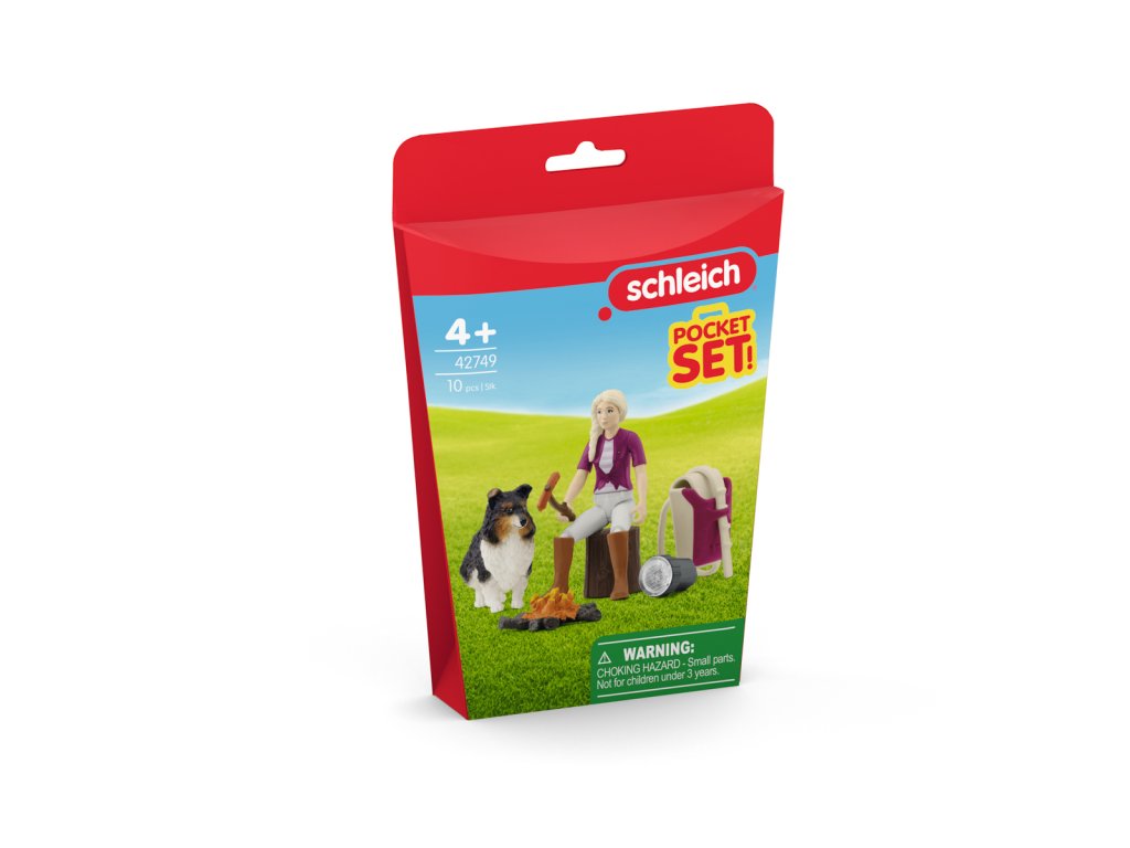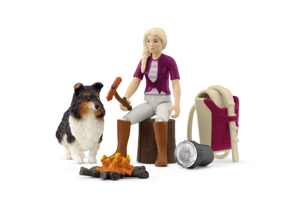 Dobrodružství se Sofií při opékání může začít. Dívka našla vhodné místo s pařezem. Tam zapálí táborák. Dobrodružství se Sofií při opékání je přesně to, co shetlandský ovčák miluje. Sofie se posadí na pařez a oba se na chvíli uvelebí u ohně. Když oheň pěkně hoří, prohrabuje se Sofie ve svém batohu. Co to může být? Opékač a klobásy! Pejskovi se sbíhají sliny. Snad se podělí! V očekávání se posadí na zadní nohy a sleduje každý její pohyb. Sofie si na cestu zpátky po tmě vzala baterku. Figurka Sofie je plně pohyblivá. Obsah: 1× figurka Sofie, 1× shetlandský ovčák, 1× kmen stromu, 1× ohniště, 1× batoh, 1× baterka, 1× opékač. Hrací sada mini figurek se dá použít samostatně nebo v kombinaci se stávajícími výrobky HORSE CLUB. Tahle hrací sada je součástí sady POCKET SET a je vhodná pro děti od 4 let. Rozměry balení: 19,9 x 10 x 5,8 cm.