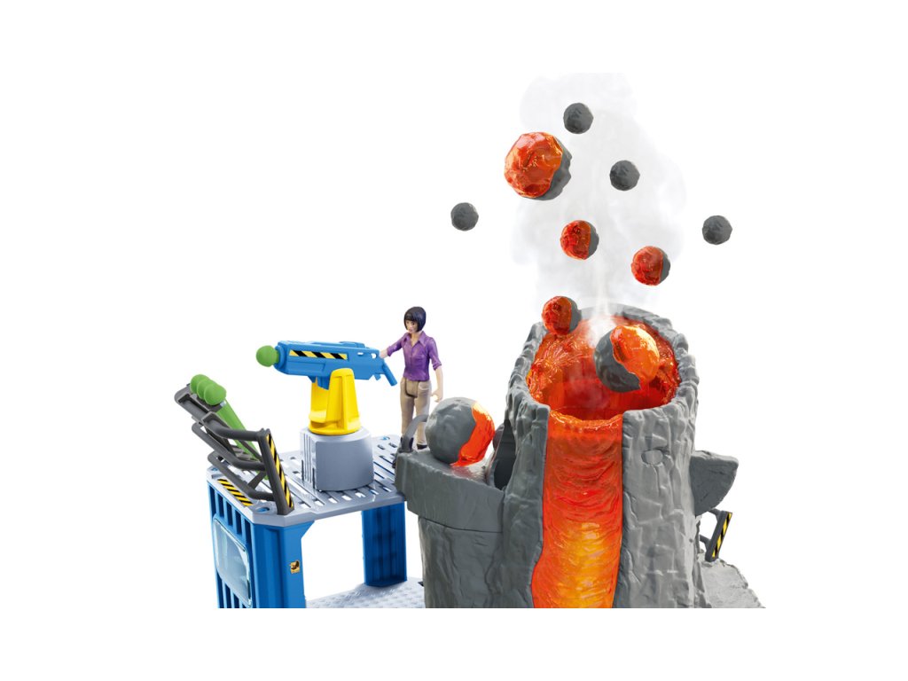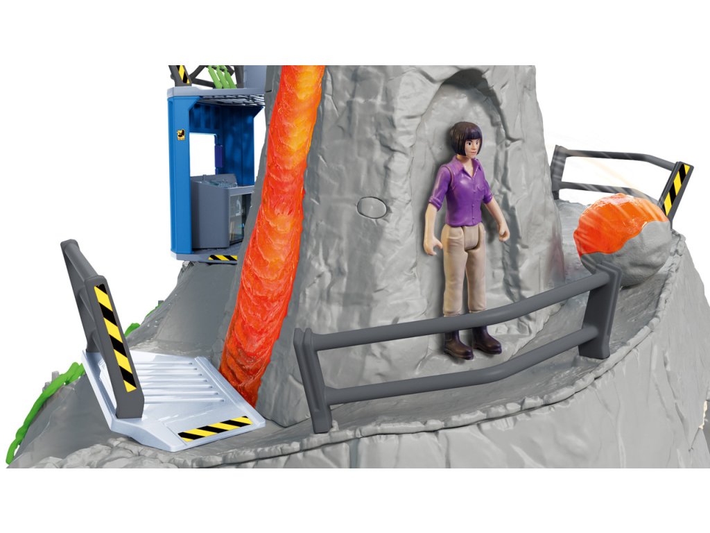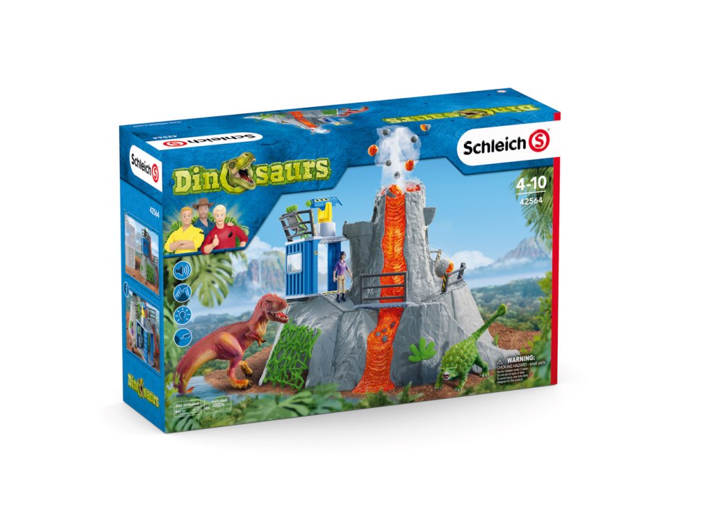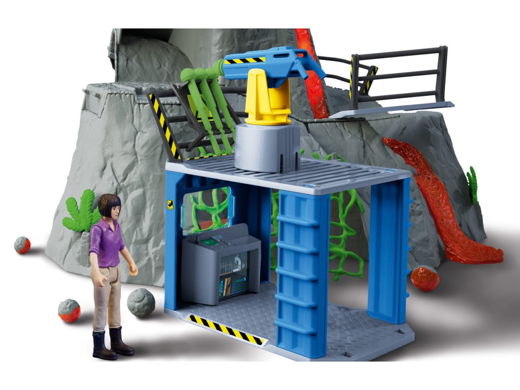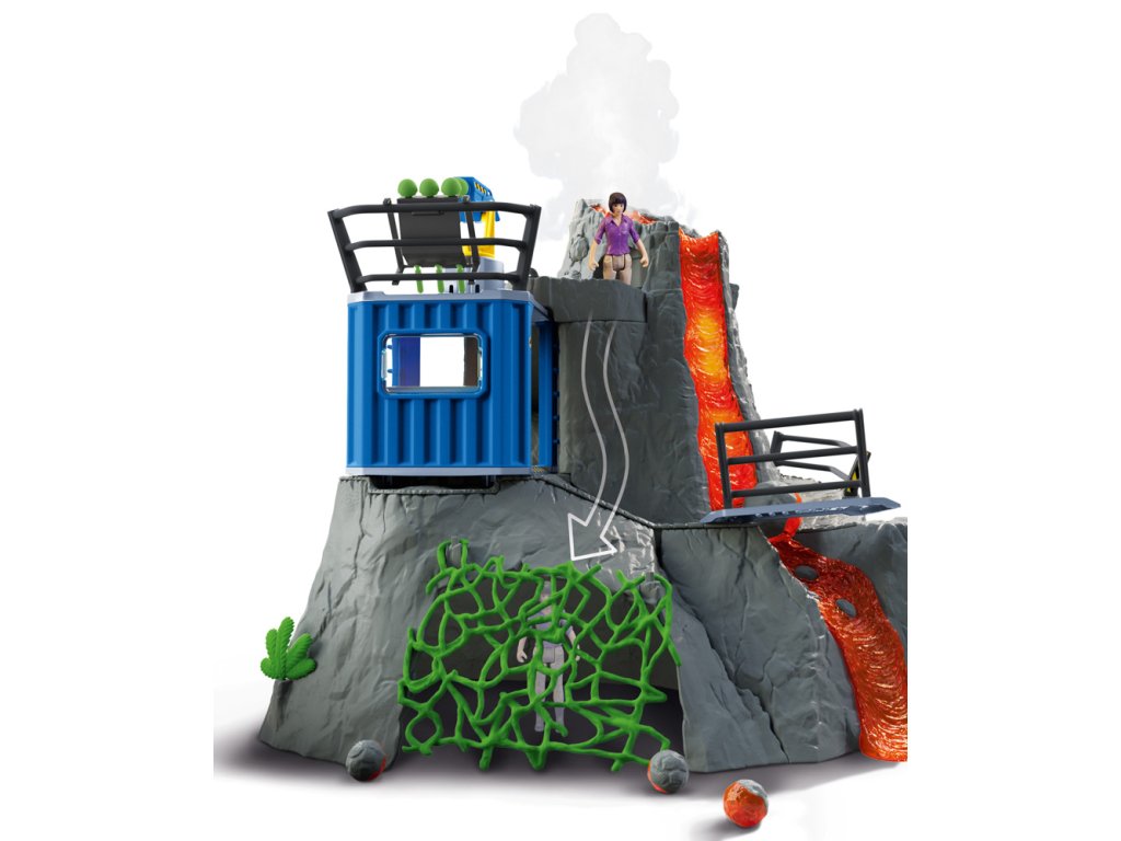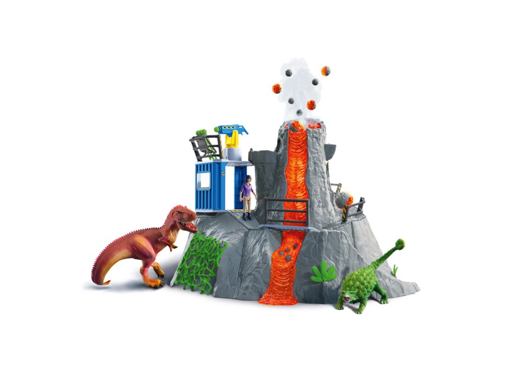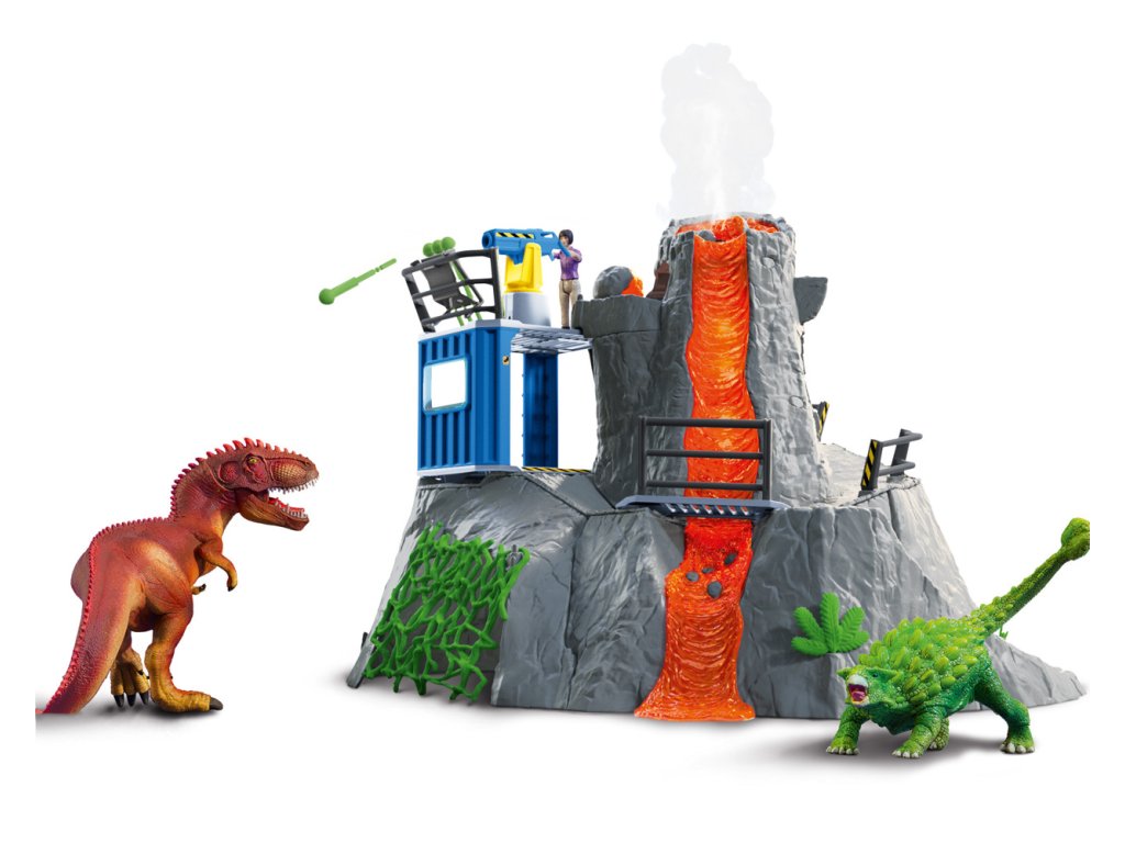 Výzkumnice Yuki z velké sopečné expedice ze Schleich® Dinosaurs sbírá do svého výzkumného kontejneru všechno, co se týká dinosaurů. Najednou slyší rachot: celá hora vibruje a stoupá dým. Reaguje bleskově a skáče na svou únikovou klouzačku, která ji doveze do tajné jeskyně pod sopkou. Stihla to jen taktak, protože sopka právě vybuchuje. Díky této funkci mohou být z kráteru sopky katapultovány kameny. Sopka navíc vibruje a stoupá z ní dým. Funkce světla LED, která je integrovaná v proudu lávy i v některých kamenech, se postará o napínavou atmosféru při hraní. Na akčnosti dodává celé situaci dráha s překážkami na zadní straně sopky. Zlatým hřebem velké sopečné expedice jsou dva dinosauři, kteří jsou v sadě obsaženi s exkluzivní speciální malbou. Figurky Schleich jsou mimořádně detailní, láskyplně malované a umožňují dětem hrát si a zároveň se učit. Sada obsahuje: 1x výzkumnice dinosaurů Yuki, 1x gigantosaurus, 1x ankylosaurus, 1x sopka, 1x kontejner, 1x zábradlí ke kontejneru, 1x zábradlí k mostu, 1x most, 1x vrchní část zábradlí, 1x boční část zábradlí, 1x držák na munici, 1x kamenná kulička, 2x kámen velký, 3x kámen střední, 4x kámen malý, 2x křišťál velký, 2x křišťál malý, 1x liána, 2x rostlina velká, 3x rostlina malá, 1x stalaktity. Baterie 3x AA nejsou součástí balení. Nevhodné pro děti do 3 let. Doporučený věk: 4-10