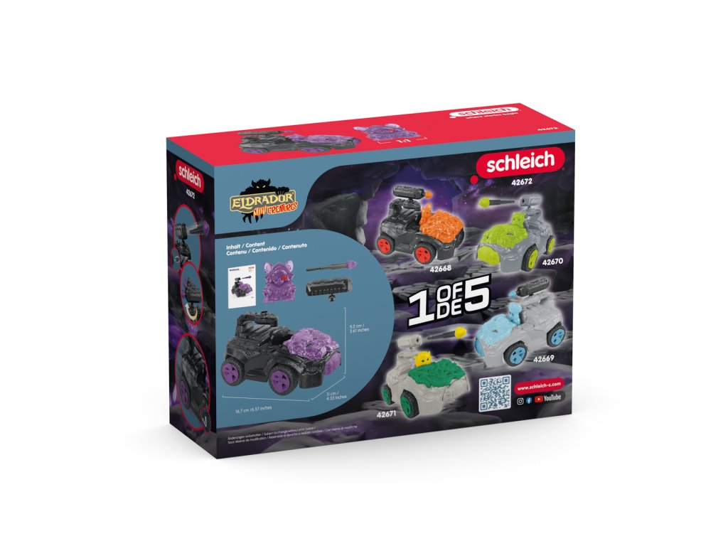 MINI CREATURE byl vylepšen! Ve svém stínovém CrashMobilu se prohání po ELDRADORU® a hledá jen problémy. Průhledné brnění CrashMobilu je tak tvrdé, že ho nic nepoškodí. Náhle prudce zabrzdí. Z cesty se ho snažil vytlačit další problémový Mini tvor! Míří palnou zbraň do správné pozice a stiskává spoušť. Zasáhla ho? Super akční vozidla pro další Mini tvory útočí na ELDRADOR®! Vybavena natahovacím motorem prolétávají vozidla pěti světy stejně rychle jako malé rakety. Díky funkci střelby jsou dobře vybaveni pro každou bitvu. K dispozici v pěti barvách! Rozměry modelu: 12 x 28,5 x 11,5 cm. Počet dílků: 17. Věk: 7-12