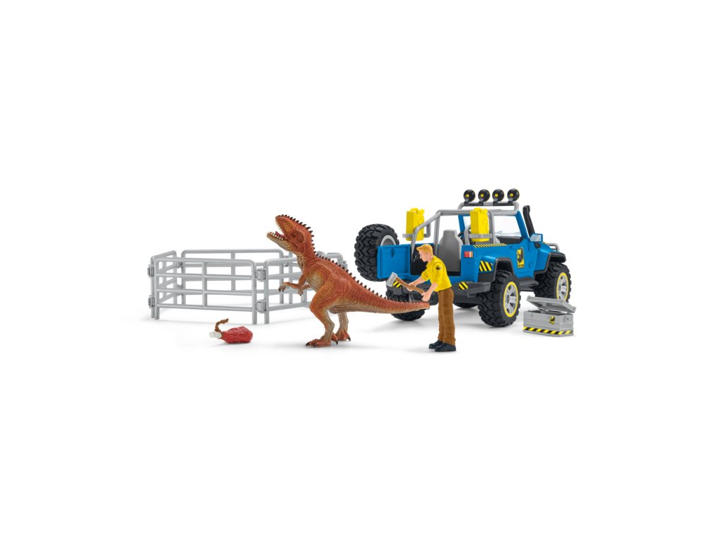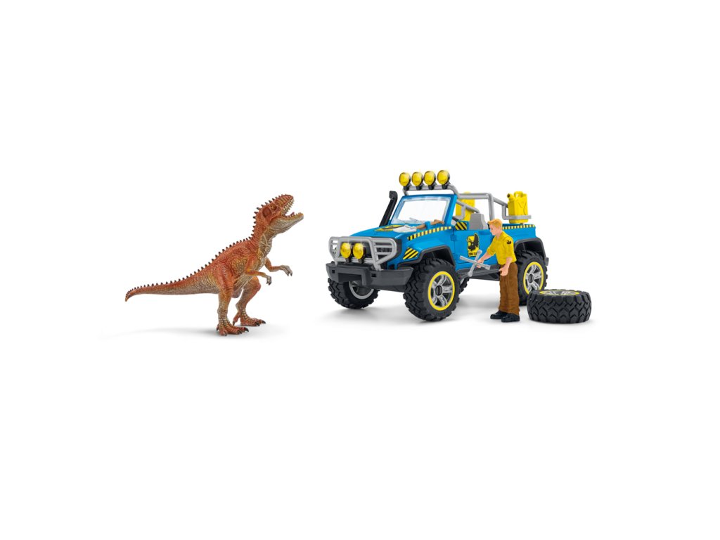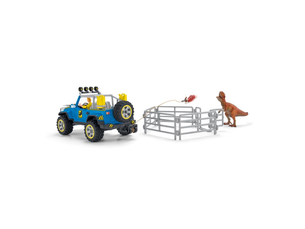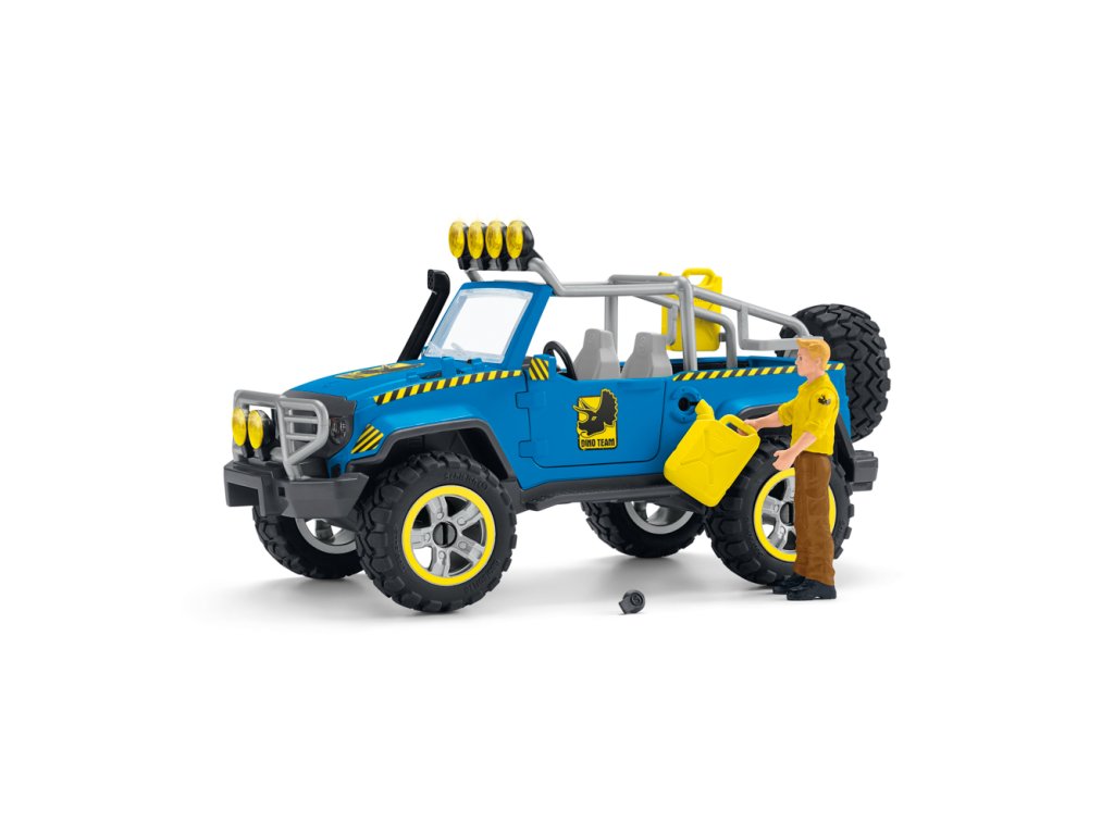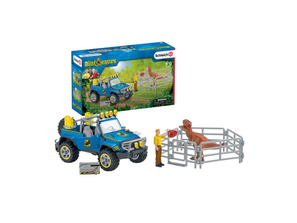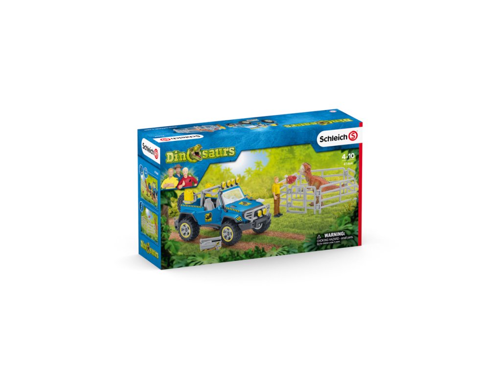 S terénním vozidlem se LUIS může rychle dostat na základnu a chytat Giganotosauruse pomocí velké návnady na maso. V případě, že při své cestě vjede do bahna může si pomocí své sady nástrojů snadno vyměnit kola nebo pomocí navijáku vytáhnout terénní vozidlo znovu ven. Terénní vozidlo od Schleich® Dinosaurs nabízí celou řadu herních možností. Figurka s pohyblivými pažemi a nohama! Figurky Schleich® jsou modelovány do nejjemnějších detailů, aby pomohly dětem učit se při hraní. Je ideální pro děti ve věku 4-10 let. Terénní vozidlo se základnou dino od Schleich® Dinosaurs je perfektním doplňkem výzkumné stanice (41462). Sada obsahuje: 1x terénní auto s navijákem, 1x výzkumník Luis, 1x Giganotosaurus, 1x návnada, 1x sekera, 1x turniket, 1x rýč, 1x hliníková krabička, 4x plotový prvek, 1x vstupní brána, 1x samolepka. Nevhodné pro děti do 3 let. Video: https://www.youtube.com/watch?v=skhV94dz7PY