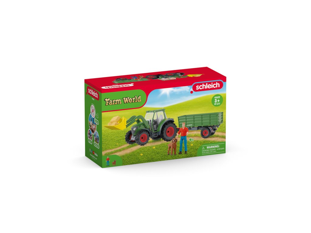 Traktor s přívěsem schleich® je perfektním doplňkem pro všechny fanoušky světa FARM WORLD! Traktor s přívěsem, který je vybaven pohyblivým předním nakladačem a přídavným a skládacím přívěsem, nabízí skvělé herní funkce pro všechny fanoušky farmy! Farmáře Paula na jeho cestách doprovází zlatohnědý goldendoodle. Výklopné čelo přívěsu! Balíky sena pro skvělou zábavu! Výklopná střecha pro snadné hraní! Rozměry: 39x23x13,6cm. Věk: 3+
