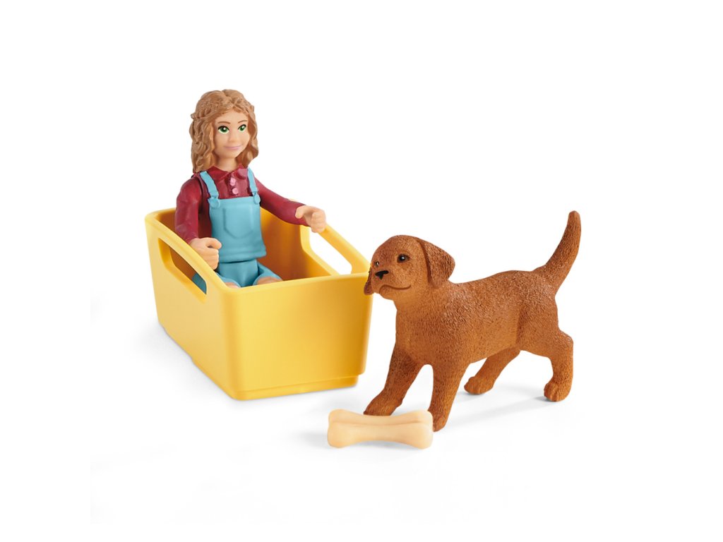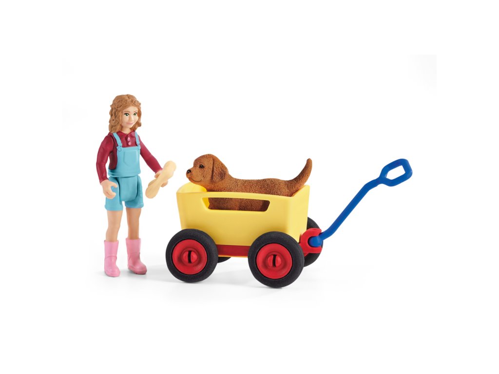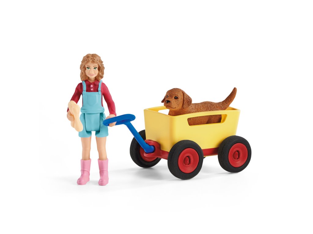 S ručním výletním vozíkem pro štěně od společnosti Schleich® FARM WORLD zažije Sarah a její štěně Bello spoustu skvělých dobrodružství. Kráčejí po loukách s barevnými květinami, kolem pole obilí a poté jedou do sadu v zahradě statku. Zde se rozhodnou, že si odpočinou a užijí si čerstvý vzduch a švitoření ptáků. Figurky Schleich jsou mimořádně detailní, láskyplně malované a umožňují dětem hrát si a zároveň se učit. Rozměr balení: 13,6 x 19,2 x 5,8 cm. Nevhodné pro děti do 3 let. Doporučený věk: 3-8.
