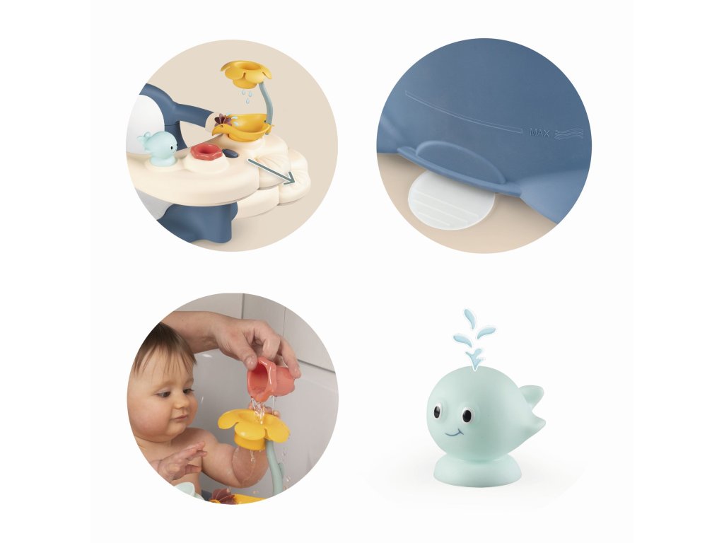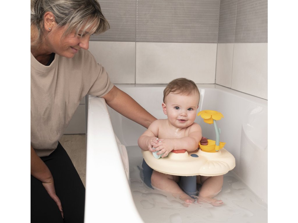 Rostoucí sedátko do vany 2 v 1 v modrém provedení nabízí pro nejmenší skvělou zábavu při koupání a maximální bezpečnost. Ergonomický tvar s měkkým sedákem a oblé tvary bez hran zajistí spoustu pohodlí. Pro snazší uložení dítěte lze pultík s aktivitami posunout dopředu díky promyšlenému bezpečnostnímu systému. Od 6 do 16 měsíců může vaše dítě objevovat herní možností s květinou a roztomilou postavičkou stříkající vodu. Čtyři přísavky zajišťují bezpečné uchycení ve vaně. Vysoce kvalitní plast a vynikající zpracování zaručují nejvyšší kvalitu. Rozměry (DxŠxV): 42 x 34 x 25 cm. Nosnost: 6-13 kg.