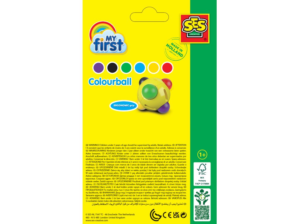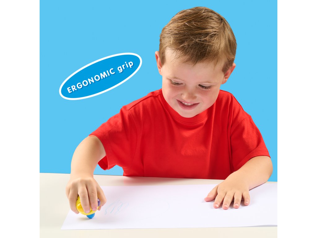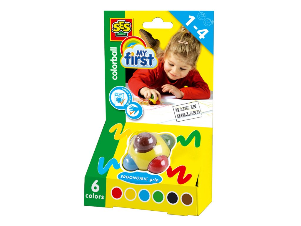 Kreslící vosková různobarevná kulička pro děti, které neumí držet tužku v ruce. Nekreslí na ruce a je snadno vypratelná z oděvu. Formuje dlaň a učí správnému uchopení tužky. Rozvíjí motorické dovednosti. Provedení v základních 6 barvách. Vhodné pro děti: 1-4. Všechny výrobku z řady ´´My First´´ jsou vyvinuty speciálně pro nejmenší děti. Výrobky v této řadě jsou ergonomické, extrémně bezpečné, hypoalergenní a bez lepku.
