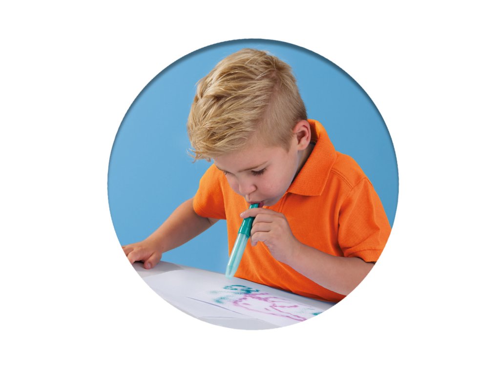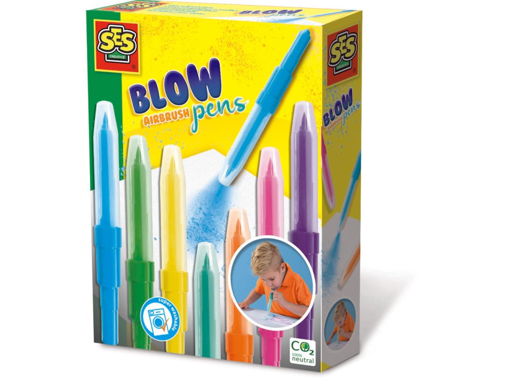 Kreativní set foukacích fix SES. Fixy snadno přeměníte na foukací fixy. Po fouknutím do fixy vytvoříte nádherné dílo. Pomocí sedmi barev vytvoříte krásně barevné přechody. Snadno omyvatelné z pokožky a pratelné z většiny druhů tkanin. Sada obsahuje: 7 foukacích fix (žlutá, oranžová, zelená, modrá, růžová, fialová, tyrkysová). Rozměr balení: 15 x 20 x 4 cm. Věk: 5+