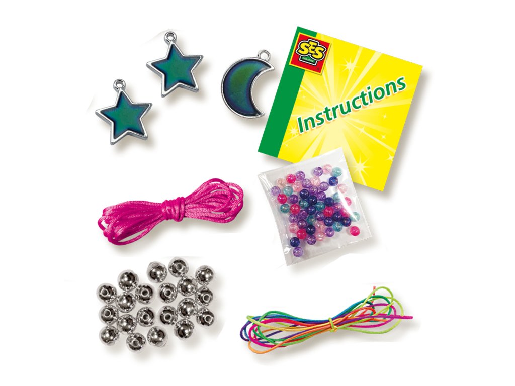 Jakou máš dnes náladu? Se šperkem galaxy mohou děti vyrábět speciální šperky. Šperky ukazují vaši náladu! Děti mohou nejen vytvořit krásné náramky a náhrdelníky, ale také se nechat ohromit měnícími se barvami šperků! Sada obsahuje teplotně citlivé přívěsky ve tvaru hvězdy a měsíce, perly a postříbřené barevné korálky, šňůrku a gumu pro vytváření různých šperků. Rozměry balení: 15x20x4cm Věk: 3+
