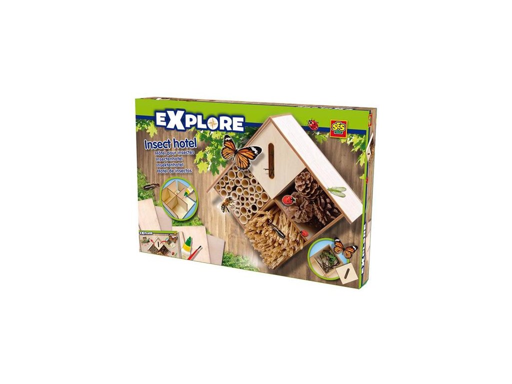 Vyrobte si na zahradu fantastický hmyzí hotel! Sestavte si jednotlivé pokoje a vyplňte je různými materiály, abyste přilákali různé druhy hmyzu. Sledujte, jak se hotel obydluje (motýli, včely, berušky, brouci a spousta dalšího hmyzu). Ve vašem hotelu může bydlet veškerý hmyz! Vlastnosti hotelu: Různé místnosti, které přitahují různé druhy hmyzu. Každý pokoj má jiný otvor nebo obsahuje jiný materiál. Speciální informační letáček vám ukáže, jakým typem materiálu můžete přilákat daný druh hmyzu. Upozornění: Používá se pod přímým dohledem dospělé osoby. Obsah: dřevěná souprava k výrobě hmyzího hotelu, štětec, lepidlo, informační leták, návod. Věk: 5+