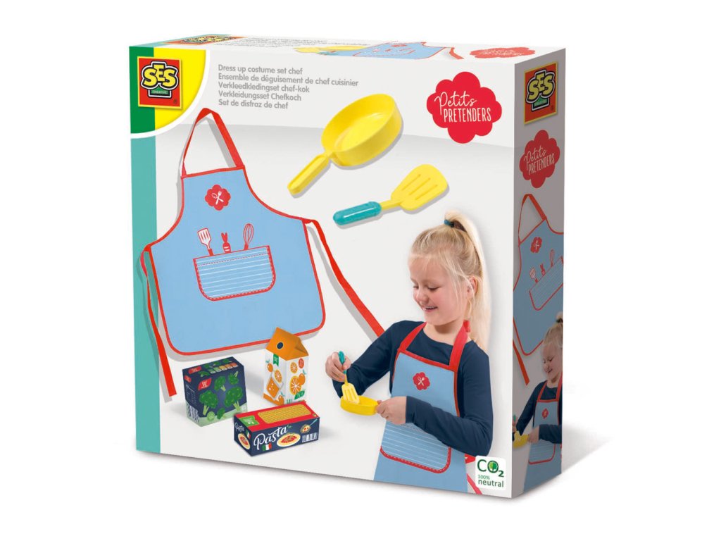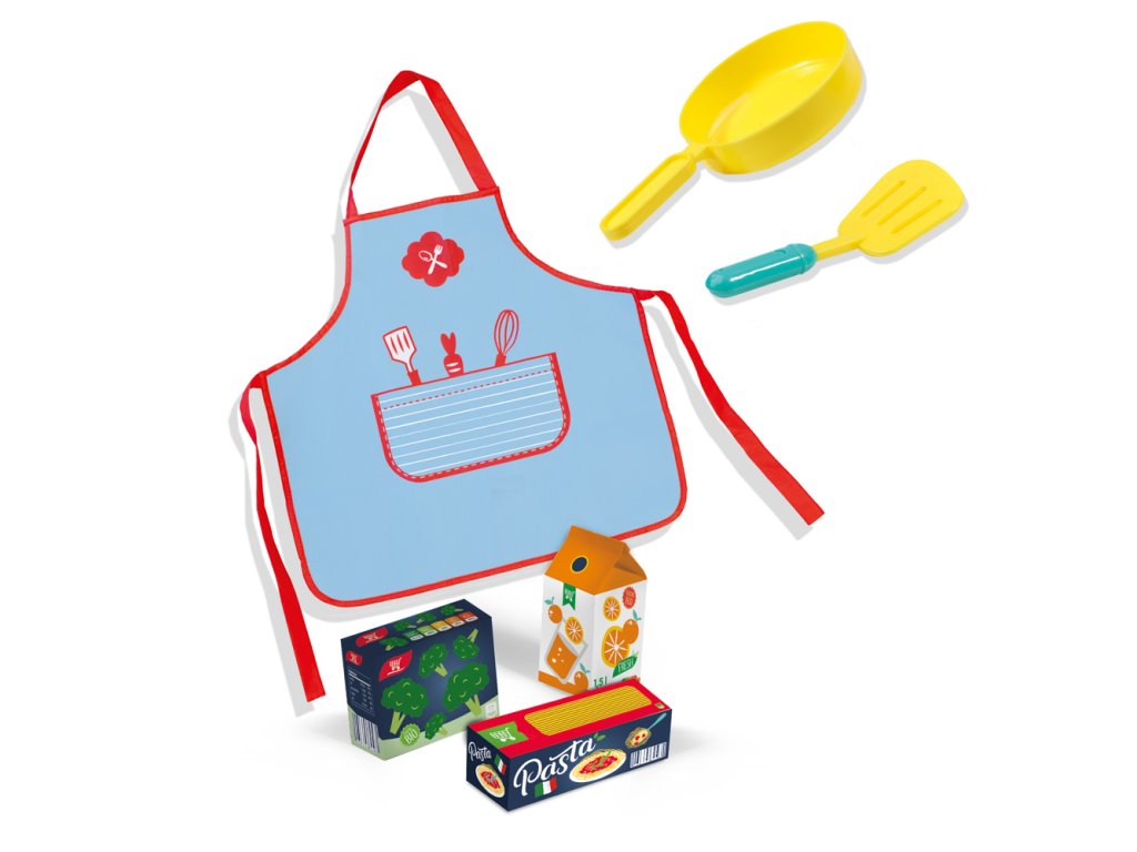 Chceš být opravdový šéfkuchař? Díky této zástěře se jím můžeš stát! Pozvi babičku a dědu na lahodnou večeři. Co jim uvaříš dobrého? Sada obsahuje: 1 zástěru, 1 pánev, 1 obracečka, 3 produkty potravin. Rozměr balení: 20 x 20 x 4 cm. Věk: 3+