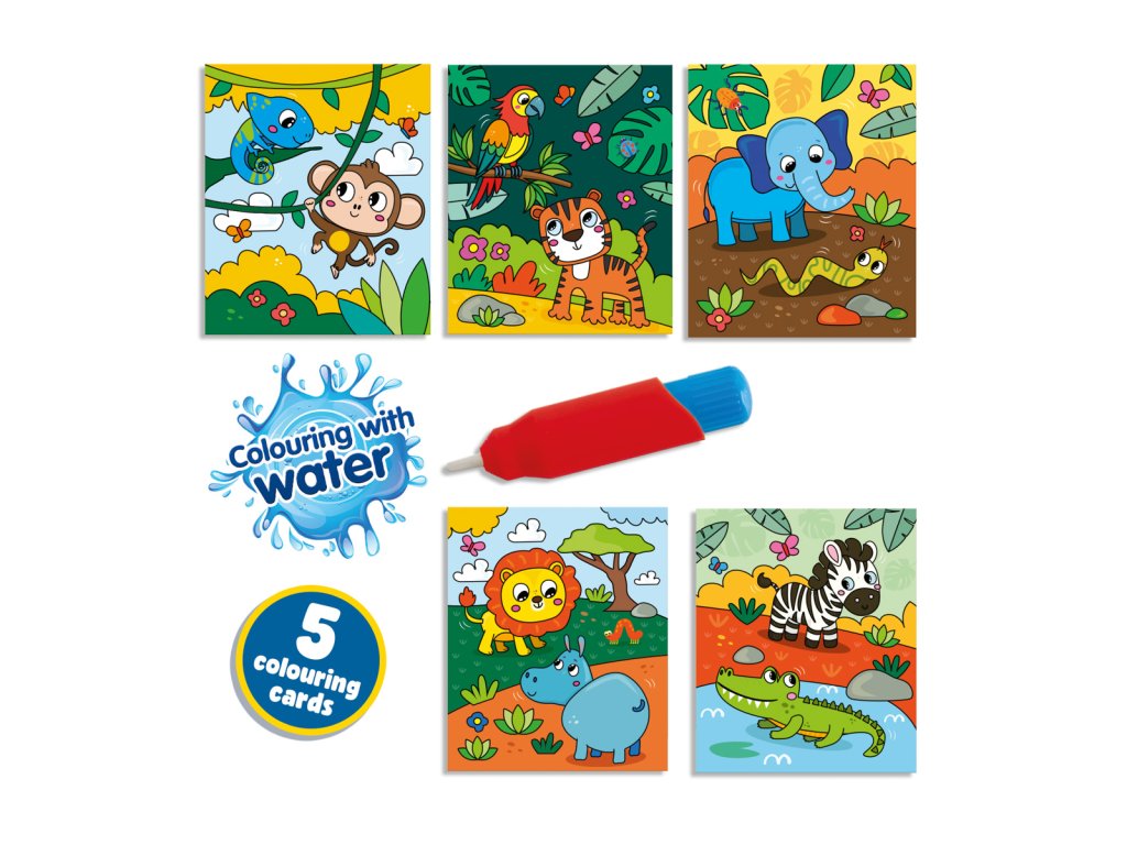 Objevte vodní omalovánky – Safari, ideální pro kreativní hru bez nepořádku. Jednoduše naplňte doplňovací vodní pero a sledujte, jak barevné scény safari ožívají. Tato kniha je ideální pro děti, aby si znovu a znovu užívaly kreativní činnosti. Znovu použitelné stránky vyschnou a vrátí se do původního stavu pro nekonečnou zábavu. Podporuje jemné motorické dovednosti a představivost – ideální pro malé průzkumníky. Sada obsahuje 5 stran omalovánek a doplňovací vodní štětec s jemnou špičkou. Rozměry balení: 25 x 15 x 2,5 cm. Věk: 3+