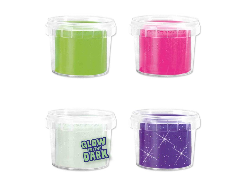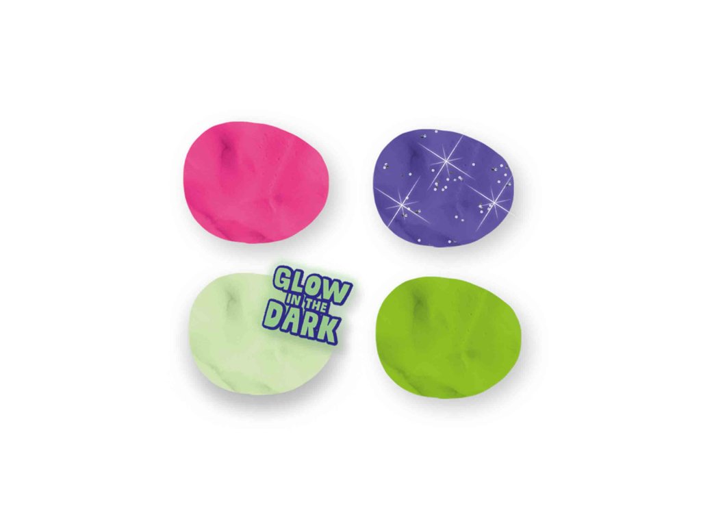Svítící modelína ve tmě 4x90g! Modelína je zcela veganská, bezlepková a omyvatelná. Je měkká a lze jí používat po dlouhou dobu díky uzavíratelnému obalu, který lze snadno znovu použít pro jiné účely. Modelína Feel good - Glow se skládá z neonově růžové, třpytivé fialové, bílé světle zelené barvy. Rozměr výrobku: 7x20x7??. Věk: 1+.