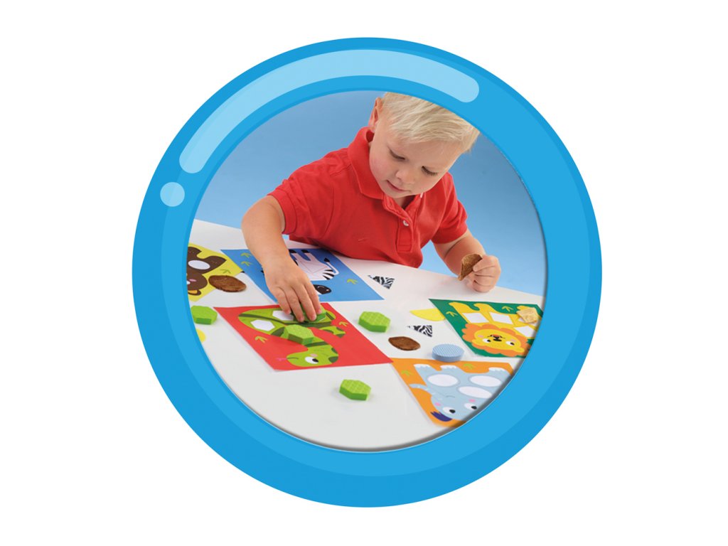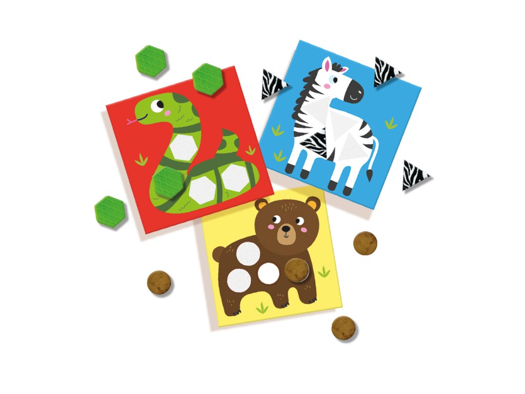 Jejda, těmto 6 zvířátkům chybí části na jejich srsti. Dokážete umístit správné typy srstí na správná místa? Má medvěd měkkou nebo drsnou srst? Mozaikové dílky lze snadno nalepit po odstranění vrchní vrstvy. Hra pomáhá v učení poznávání barev, tvarů a srsti zvířat. Sada obsahuje: 6 mozaikových karet se zvířátky, 8 pěnových tvarů, 8 plstěných tvarů, 8 tvarů se srstí. Rozměr balení: 20 x 20 x 4 cm. Věk: 1+