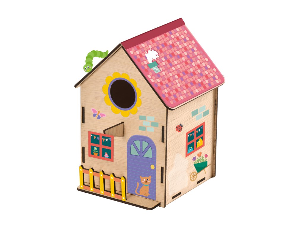 Vytvořte si útulný domov pro ptáčky s touto dřevěnou stavebnicí Ptačí budka. Děti budou milovat tento umělecký a řemeslný projekt, ideální pro mladé milovníky přírody a venkovní zábavy. Obsahuje 11 dřevěných dílků, lepidlo a jednoduché pokyny, díky kterým si děti mohou snadno postavit ptačí budku samostatně nebo s přáteli. Ideální pro aktivní, kreativní hru. Navíc děti mohou ozdobit ptačí budku pomocí barev, samolepek nebo fixů, čímž každý výtvor získá jedinečný vzhled, který přitahuje ptáky a rozzáří zahradu. Přispívá k rozvoji jemné motoriky a kreativity sestavováním, zdobením a zavěšením ptačí budky. Podporuje zodpovědnost a úctu k přírodě. Tato sada na výrobu ptačí budky, vyrobená z odolných materiálů vhodných pro děti, je ideální pro nadšence, kteří milují umění a řemesla inspirované přírodou. Jste připraveni postavit svou ptačí rezervaci? Sada obsahuje: 11 ks dřevěných dílů, arch samolepek, kalíšek s lepidlem 5 ml, štětec a návod. Rozměry balení: 20 x 30 x 4 cm. Nevhodné pro děti do 3 let. Věk: 5+