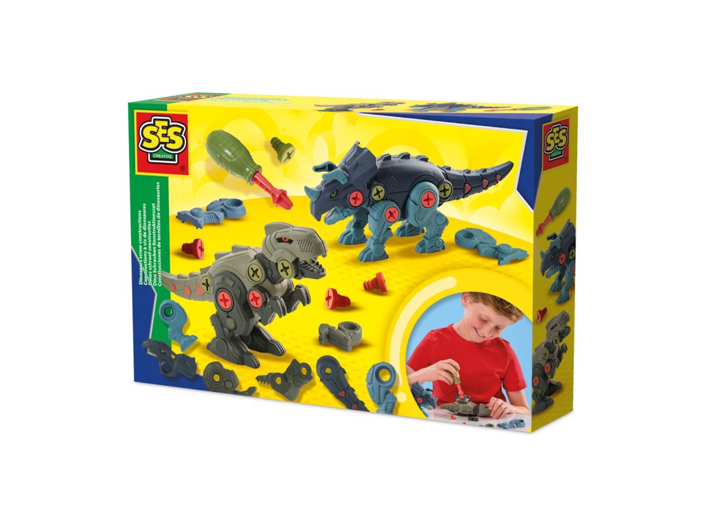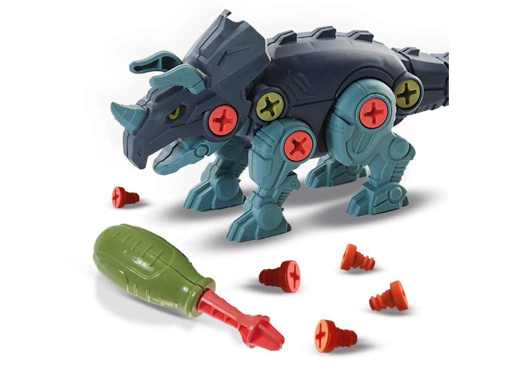 Postav si vlastního T-rexe a Triceratopse s touto zábavnou stavebnicí. Obsahuje 35 konstrukčních dílů, 20 šroubů, šroubovák vhodný pro děti a návod. Díly lze opakovaně skládat a rozebírat pro nekonečnou zábavu. Podporuje jemnou motoriku a schopnost řešit problémy. Ideální pro děti, které milují dinosaury a praktické stavební projekty. Rozměry balení: 20 x 30 x 5 cm. Nevhodné pro děti do 3 let. Věk: 5+