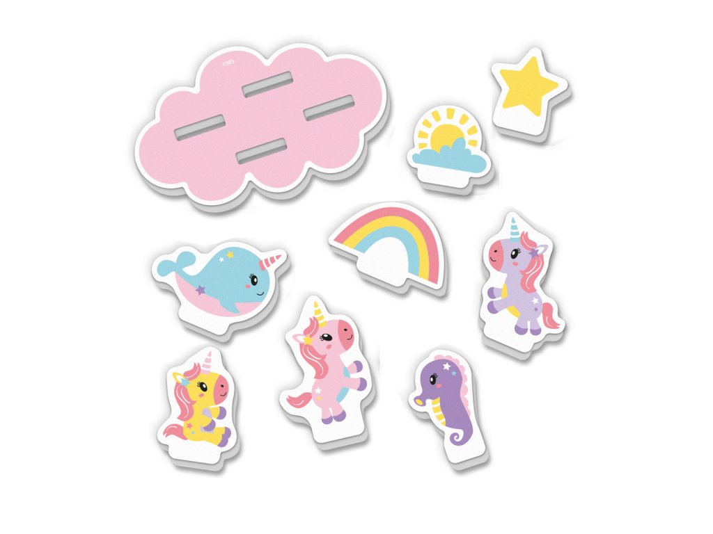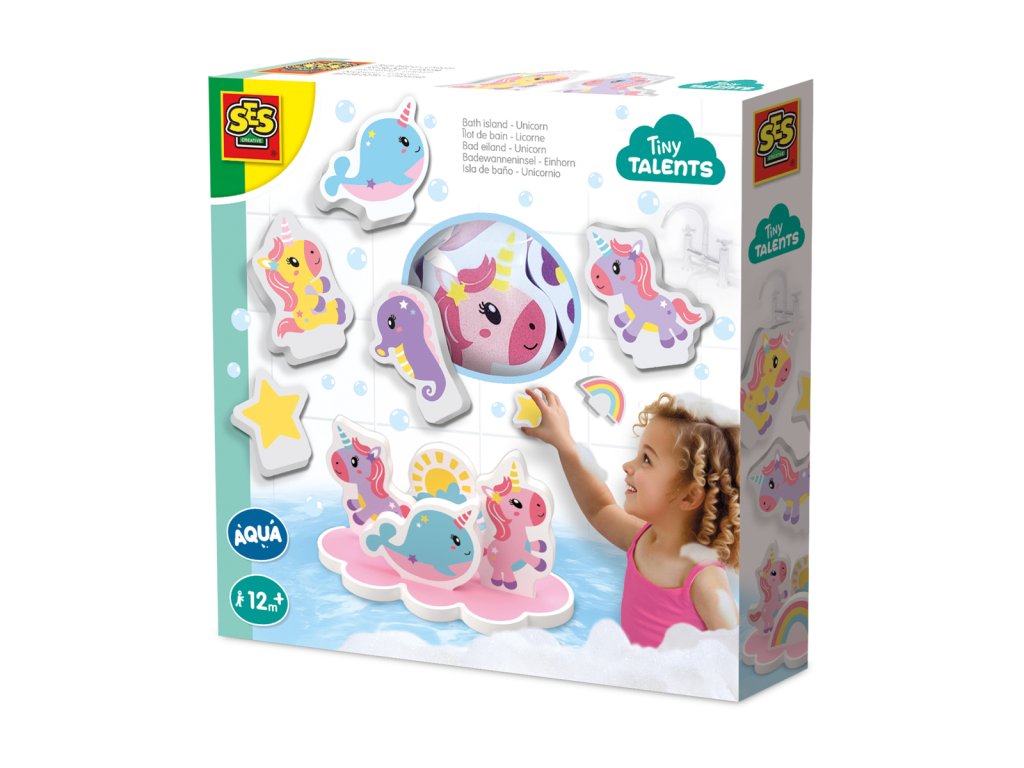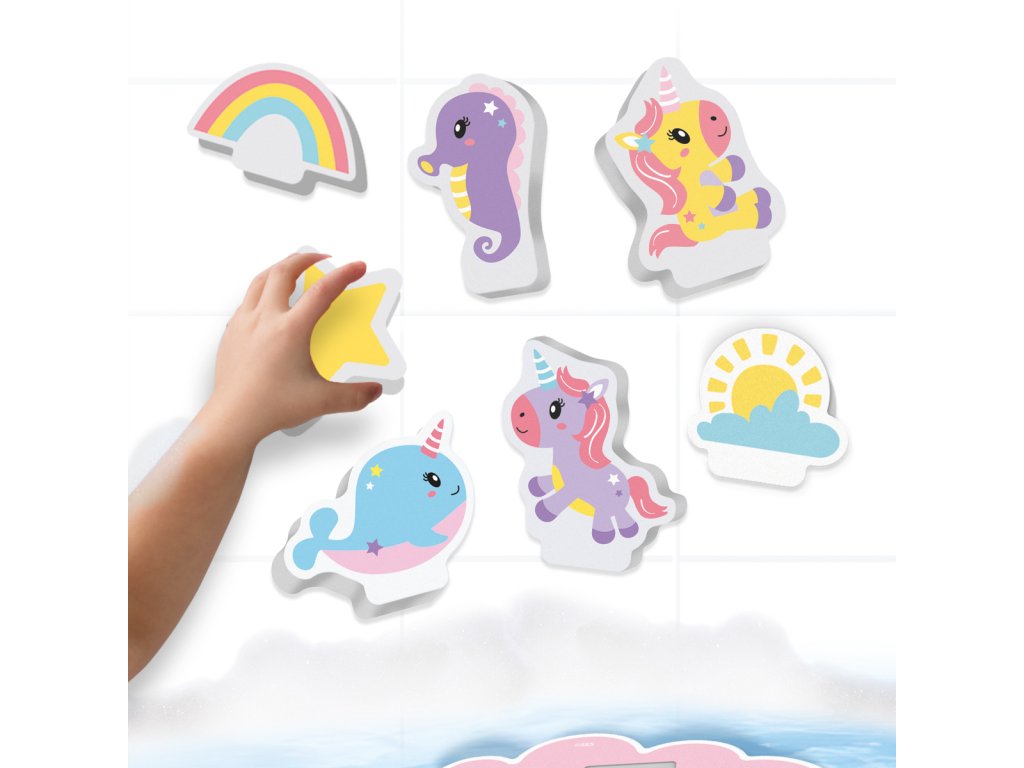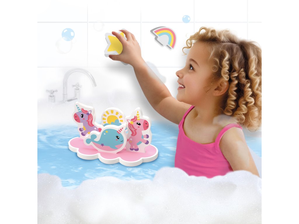 Vytvořte si kouzelný herní svět ve vaně s hrou Tiny Talents – Bath Island Jednorožci. Obsahuje 9 pěnových dílů: 8 vodolepek s motivy jednorožců a 1 plovoucí ostrov. Figurky mohou plout po vodní hladině, připevněné na ostrově, nebo se nalepit na koupelnové dlaždice. Podporuje nápadité vyprávění příběhů a zábavu při koupeli. Ideální pro děti, které milují jednorožce a vodní dobrodružství. Rozměry balení: 20 x 20 x 4 cm. Věk: 1+