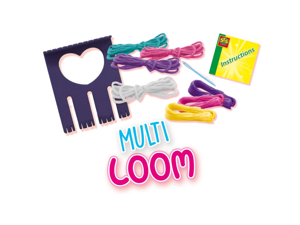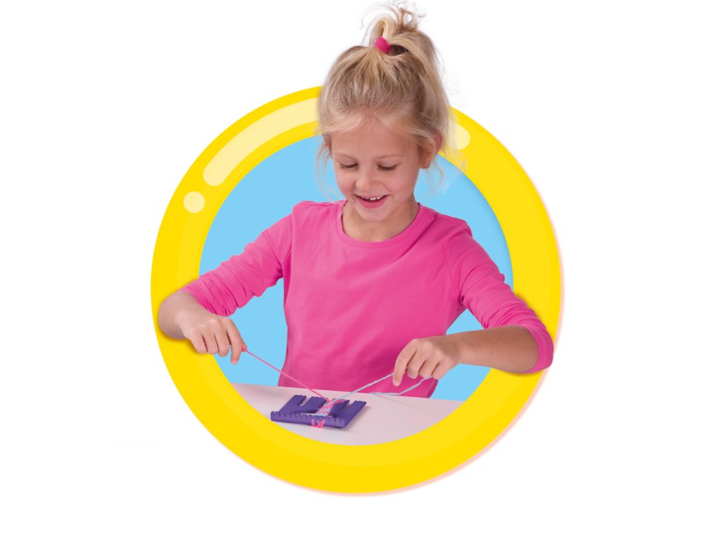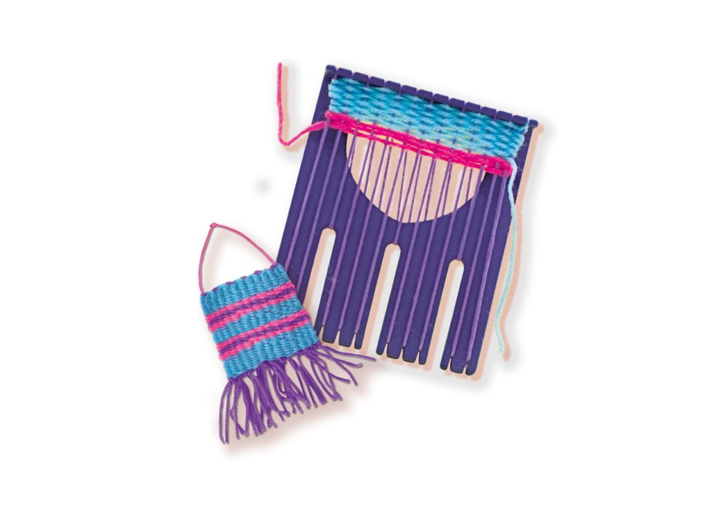 S tímto multifunkčním nástrojem na tkaní můžete vyrábět nejrůznější zábavné výtvory jako jsou bambule různých velikostí, záložky, pásky nebo náramky přátelství. Tvoř se svými přáteli. Sada obsahuje: 1 ruční tkalcovský stav, 3 barevné bavlnky, 4 barevné akrylové příze silné, jehla, návod. Rozměr balení: 30 x 20 x 4 cm. Věk: 6+