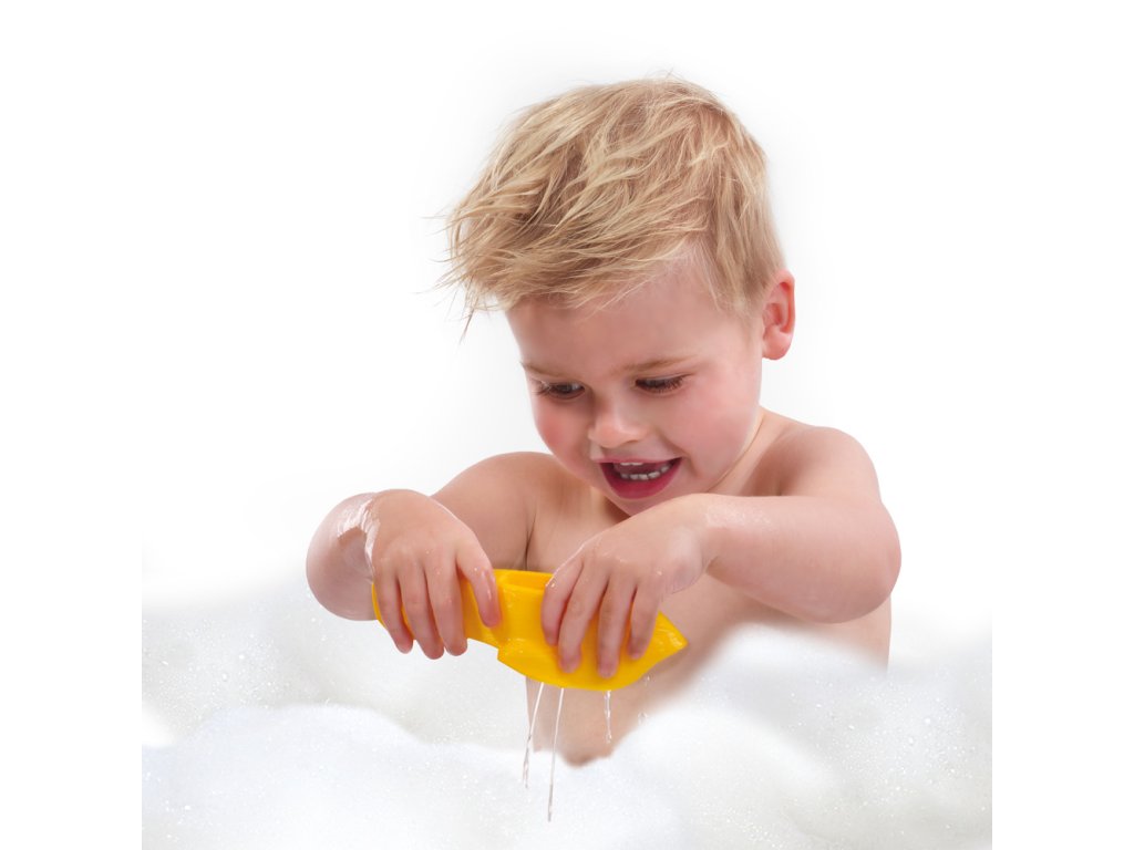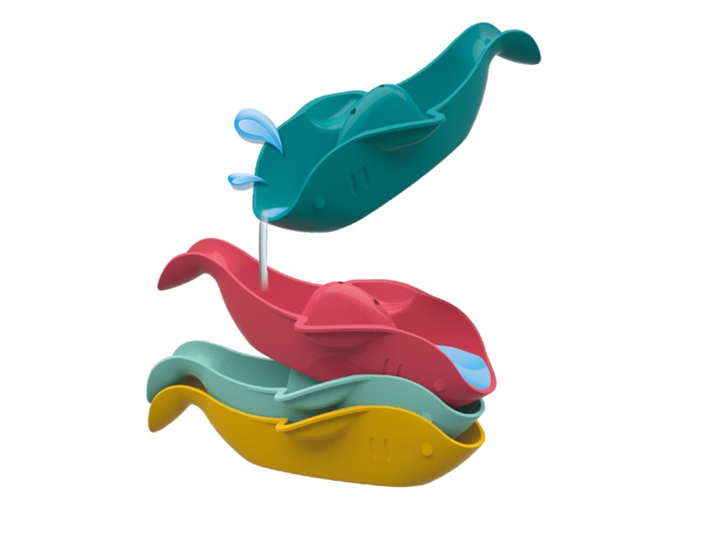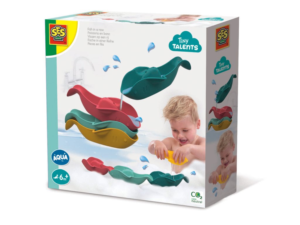 Děti milují koupání ve vaně. S těmito čtyřmi multifunkčními rybičkami si děti užijí hodiny zábavy. Rybičky můžete skládat na sebe, spojovat je nebo je používat jako naběračku či cedník. Sada obsahuje 4 pestrobarevné kalíšky ve tvaru rybičky. Rozměr balení: 20 x 20 x 6 cm. Věk: 6m+