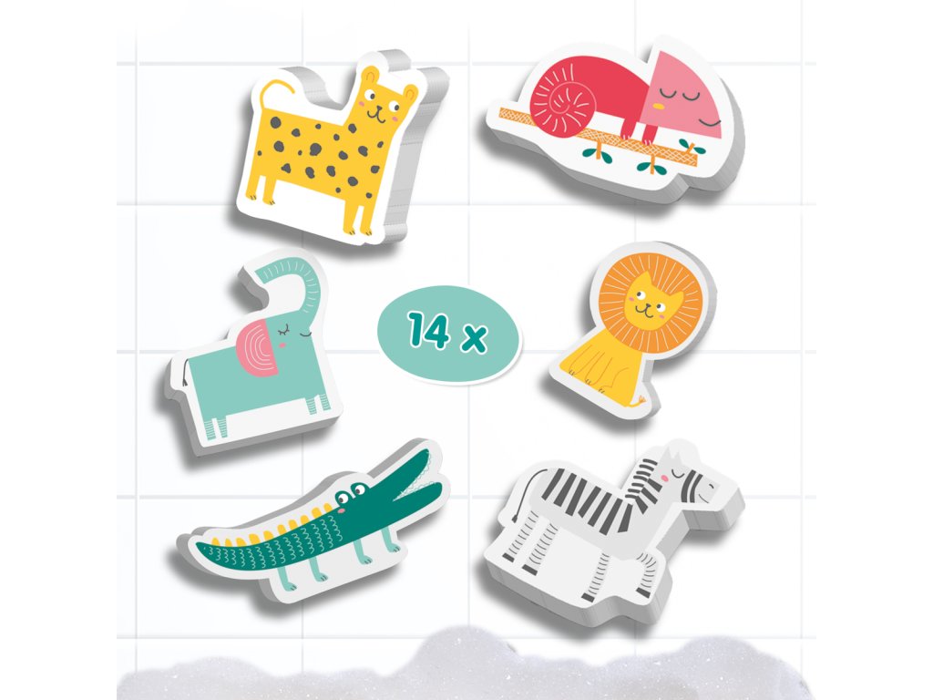 Děti milují koupání ve vaně. Vydejte se na cestu do safari a vytvořte si svůj vlastní příběh se všemi 14 zvířátky. Pěnové vodolepky v podobě různých zvířátek lze snadno připevnit na mokré povrchy a stejně snadno je zase odejmout. Podporuje dětskou představivost a rozvoj jemné motoriky. Sada obsahuje: 14 pěnových zvířátek. Baleno v krabičce. Rozměry balení: 20 x 20 x 4 cm. Věk: 12 m+
