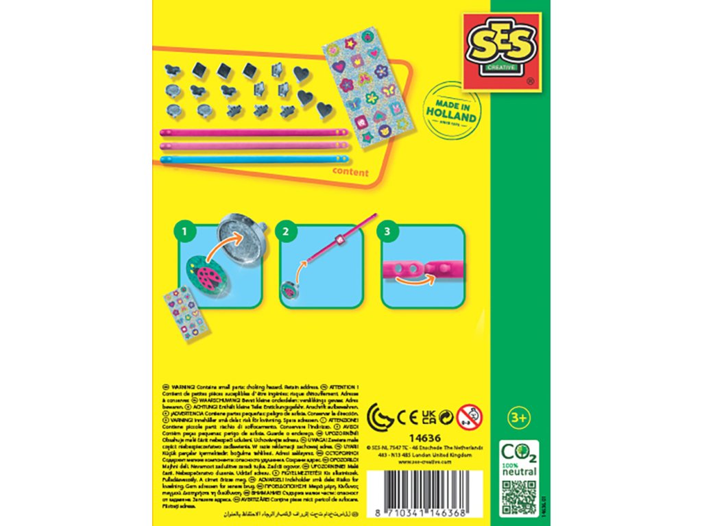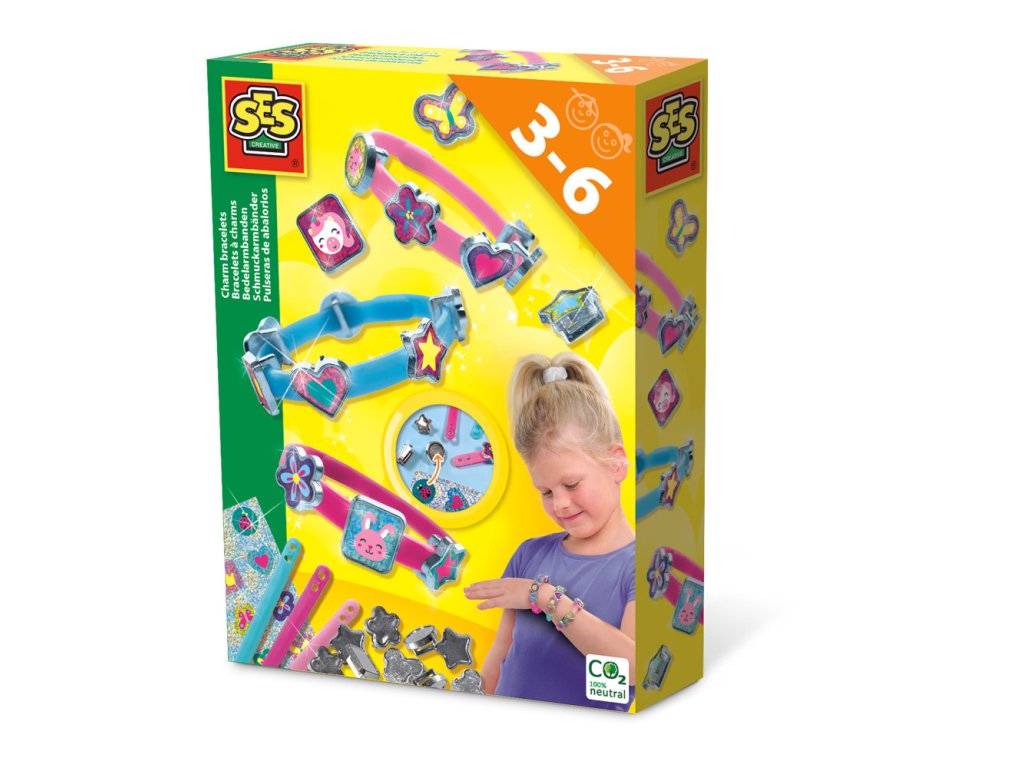 Vyrobit si vlastní šperky nemusí být složité! Stačí na ozdoby nalepit lesklé třpytivé nálepky a nasunout je na jeden ze tří plastových náramků. Kombinujte a spojujte své vlastní výtvory, odstraňte je a vytvořte opět něco nového! Každý den můžete mít na svém zápěstí jiný design. Obsahuje: 3 Barevné plastové náramky, 18 nasunovacích ozdob, třpytivé samolepky. Věk: 3+