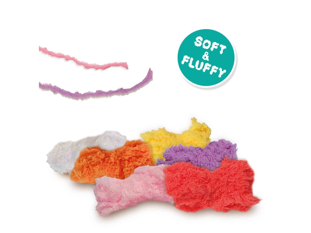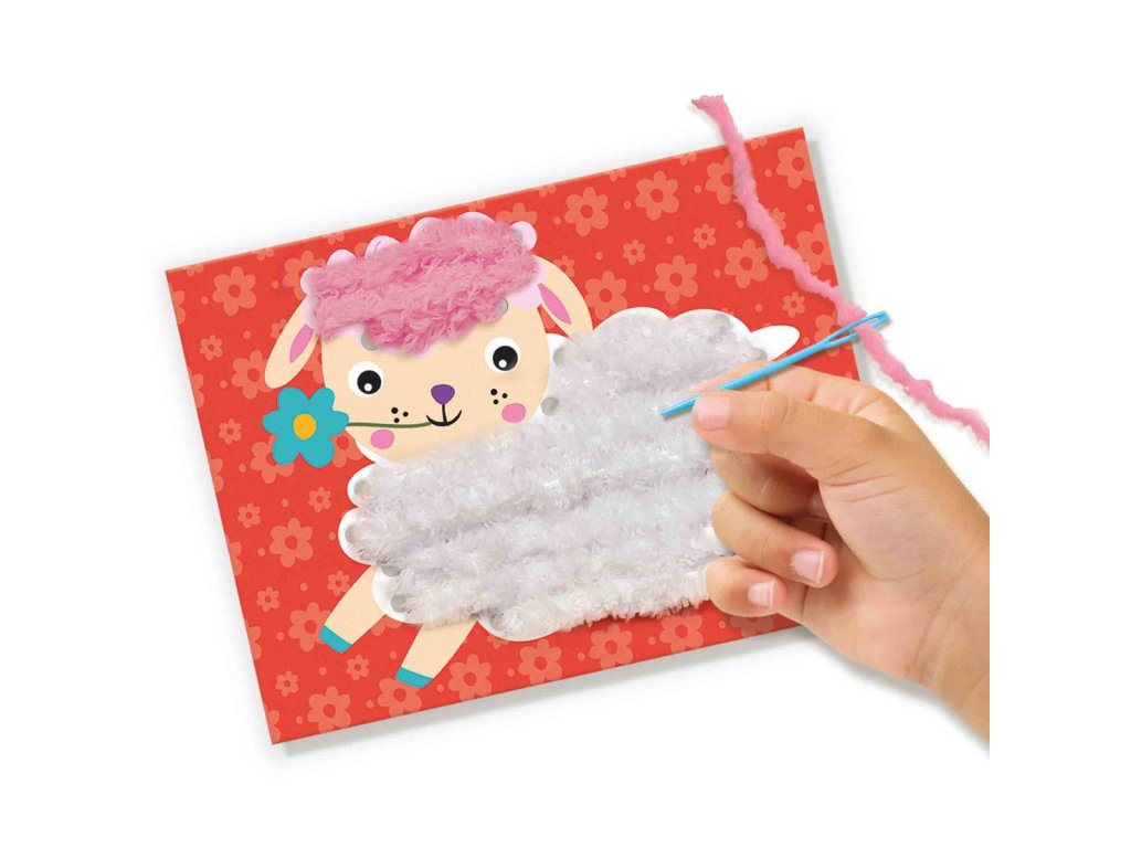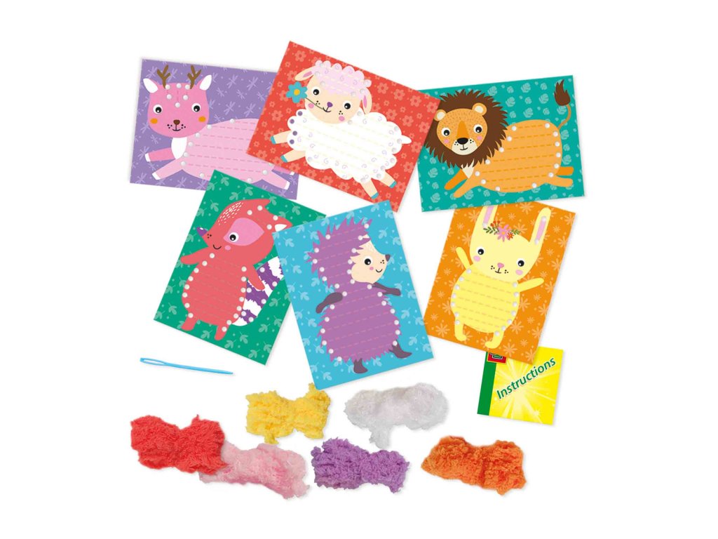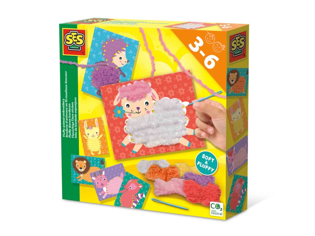 S touto sadou děti vyšívají měkké kožešinky (srst) pro 6 různých zvířátek. Plastová jehla má velké očko, které usnadňuje navlékání nitě. Sada se skládá ze 6 pevných vyšívacích karet, 6 barev nadýchané vyšívací příze a manuál. Rozměr balení: 20x20x4cm. Věk: 3+