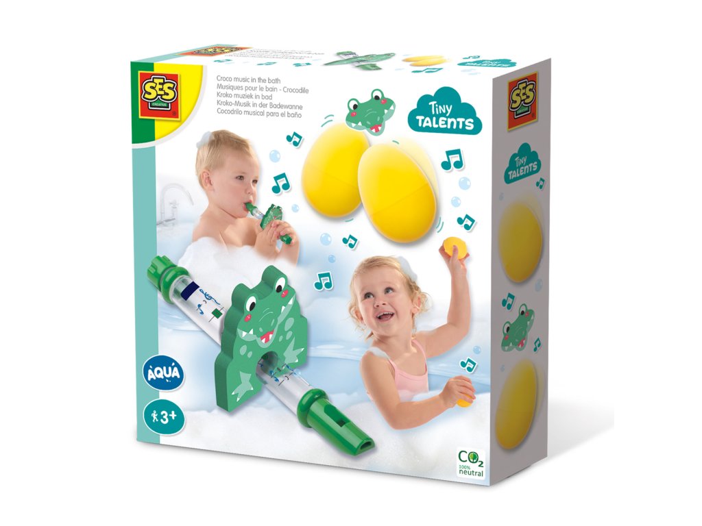 Veselá píšťalka s roztomilým krokodýlem a dvě hrkací vajíčka. Zábava ve vaně může začít. Rozměry balení: 20x20x5cm. Věk: 3+