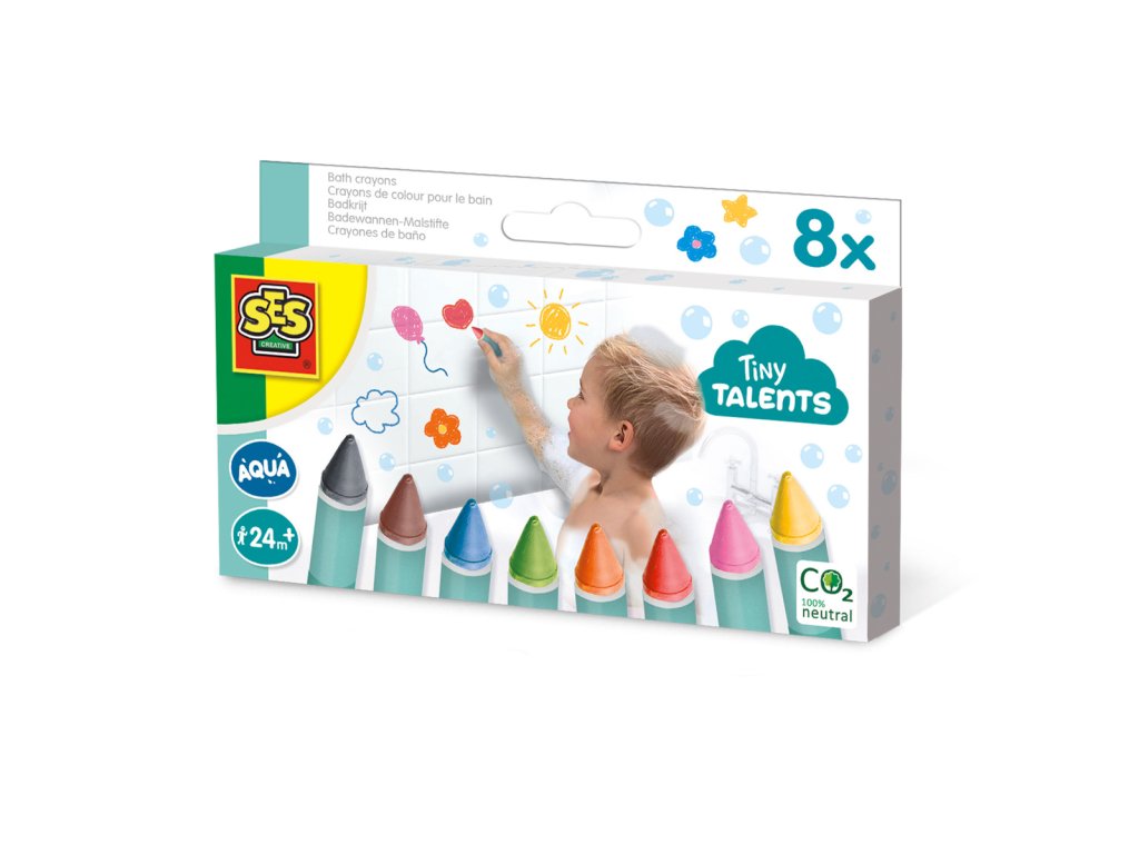 S voskovkami do vany od firmy SES si děti užijí při koupání skvělou zábavou. Snadno se s nimi maluje a děti si tak mohou nazdobit vanu podle své představy. S těmito voskovkami může vaše koupelna každý den zářit jinými obrázky. Sada obsahuje 8ks barevných voskovek. Rozměry balení: 17,2x10,5x1,75cm. Věk: 24m+